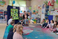 Pani Ada przeczytała dzieciom książki z serii „Kicia Kocia”.
