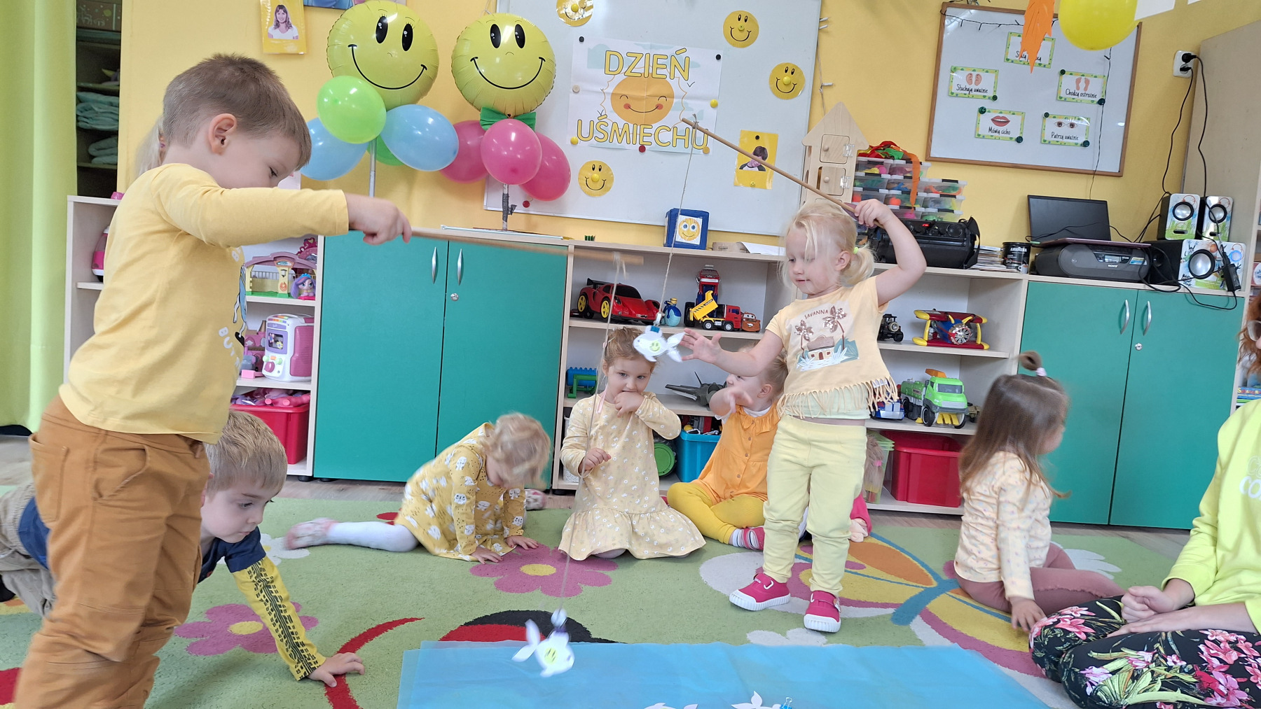 Zabawy tego dnia miały każdego przedszkolaka wprawić w dobry nastrój i wywołać dużo uśmiechu na twarzy.