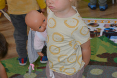 Nasz uśmiechnięty dzień- rozpoczęły tańce i zabawy , które od razu sprawiają, że na twarzy małych Słodziaków gościł uśmiech- „Koza”, Papuga kolorowa”, „Pingwinek”, „Wesołe ręce” „Jadę”, „tańcząca Wiewióreczka” oraz wiele zabaw dydaktycznych- „Łapanie usmiechniętych rybek” Jak wygląda moja buzia..
