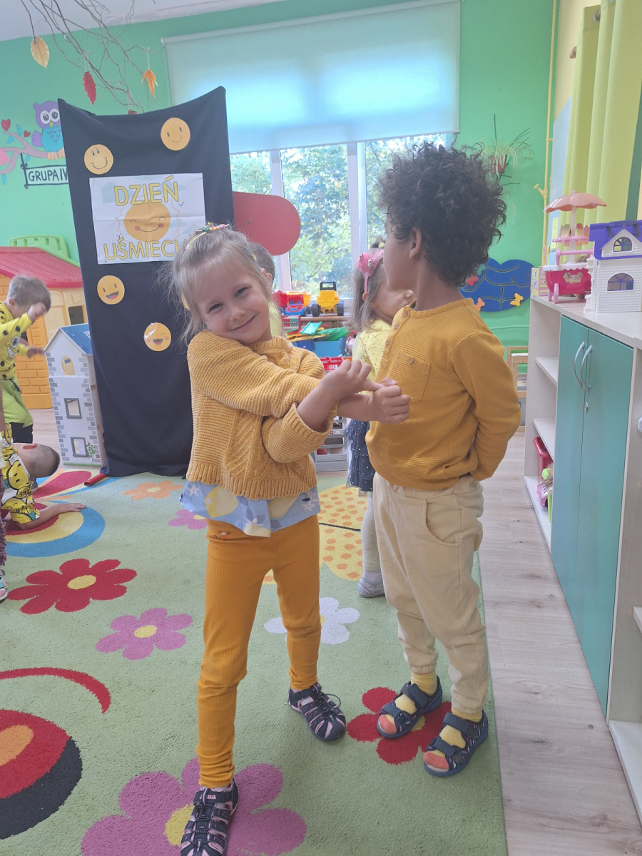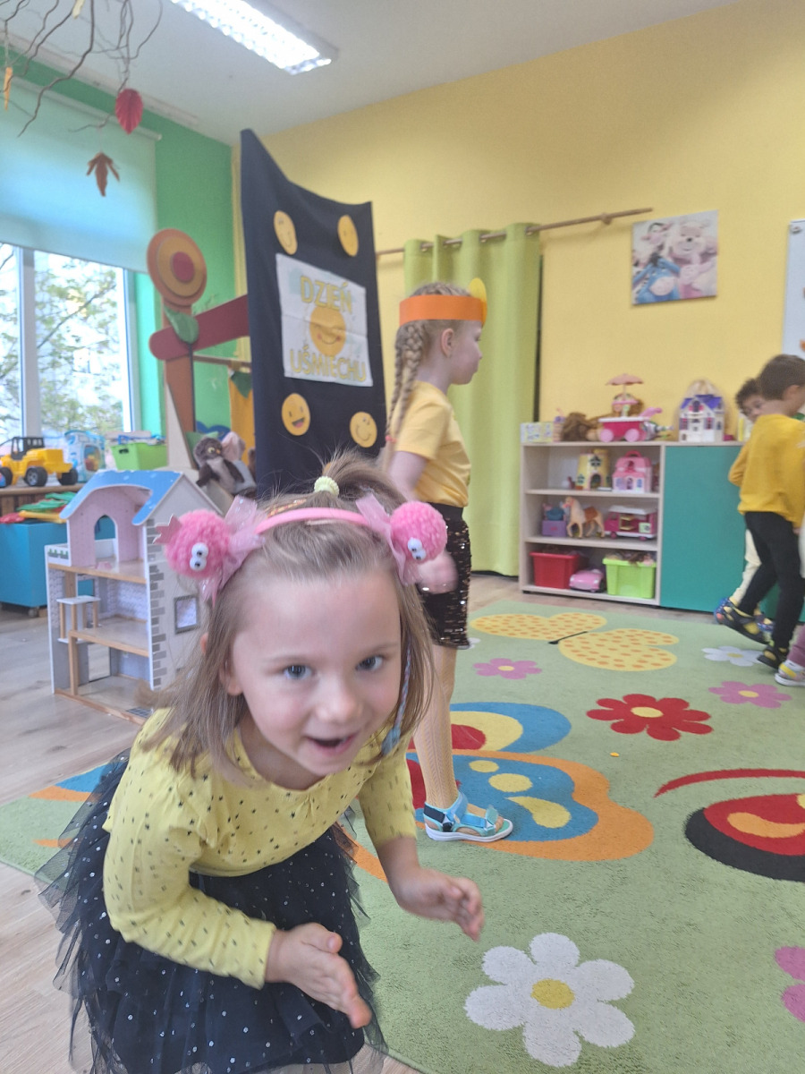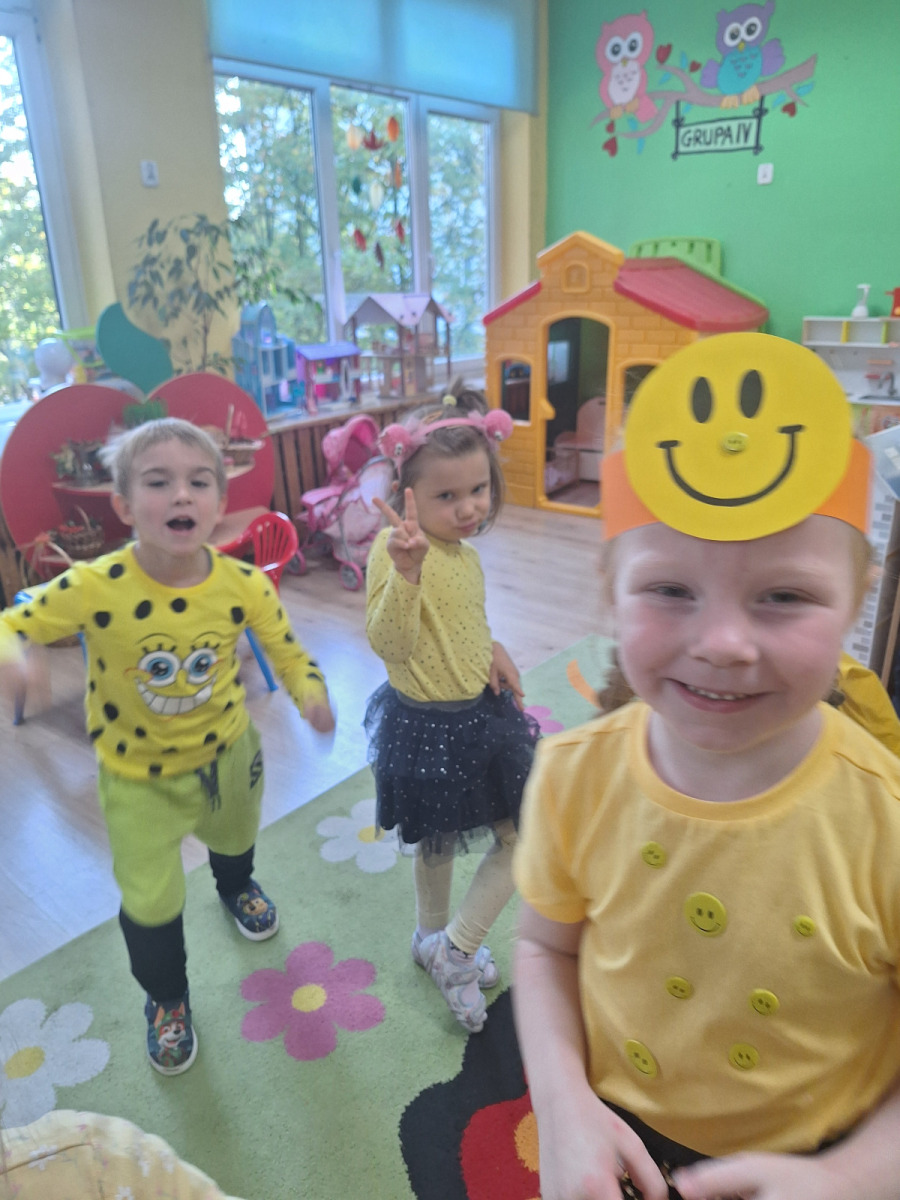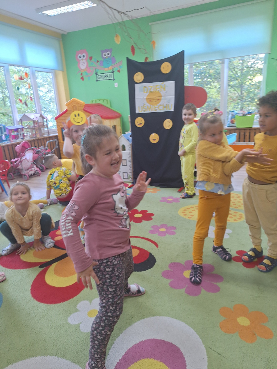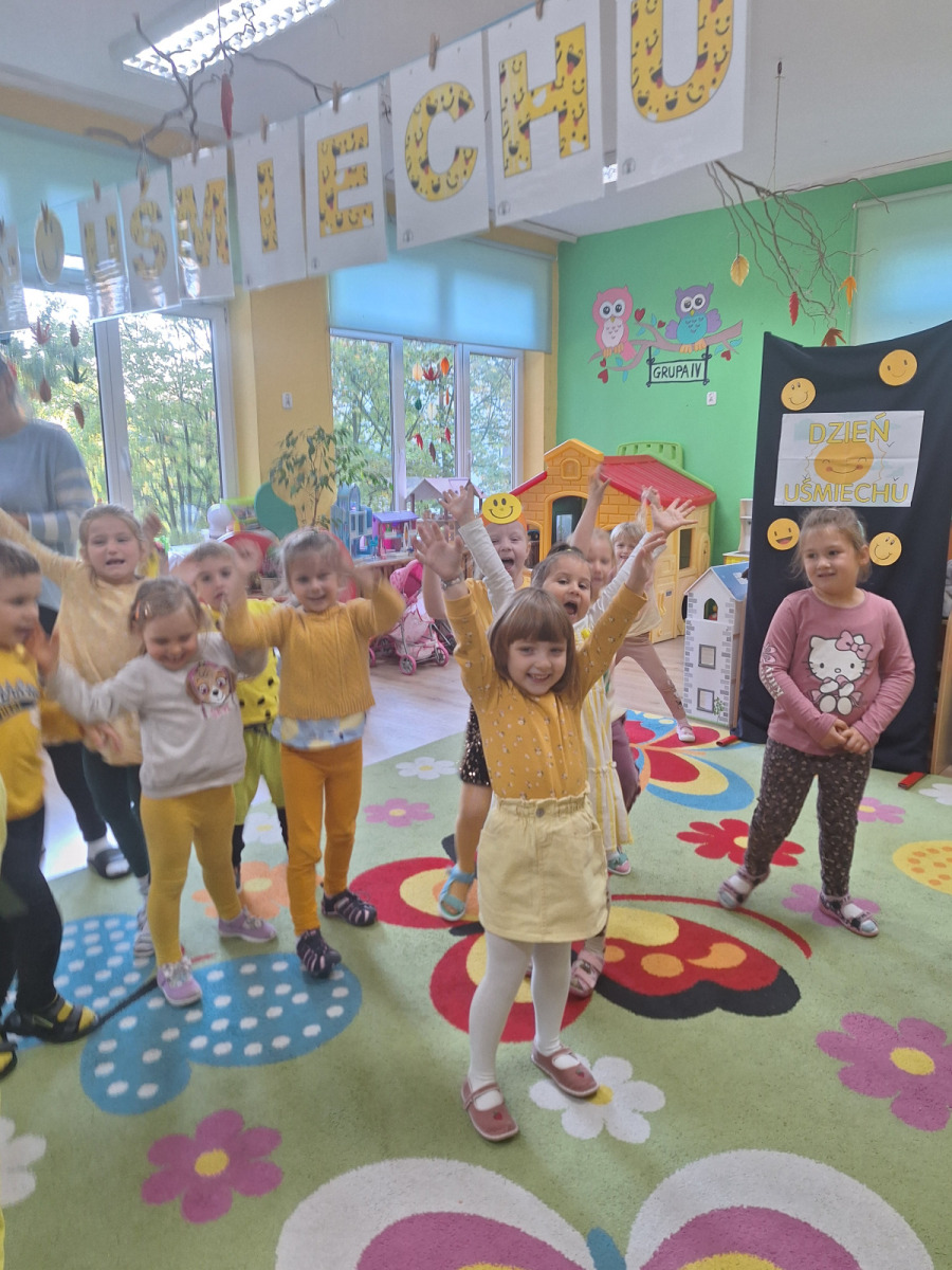 W pierwszy piątek października obchodzimy Światowy Dzień Uśmiechu. Jego celem jest promowanie optymizmu i dobrych emocji. Jak co roku, Talenciaki z radością włączają się w obchody tego wesołego święta. Ten dzień przedszkolaki rozpoczęły tańcem do piosenki Louisa Prima „When you’re smiling”. Później było równie wesoło. Szukaliśmy uśmiechów ukrytych w sali, robiliśmy śmieszne miny, przesyłaliśmy sobie uśmiechy na wzajem, obejrzeliśmy bajkę o krainie uśmiechu, a także wykonaliśmy uśmiechnięte odznaki, którymi obdarowaliśmy napotkanych podczas spaceru przechodniów z życzeniami „Wesołego Dnia Uśmiechu”. I jak można się było spodziewać, wszyscy się do nas uśmiechali i również życzyli nam miłego dnia.