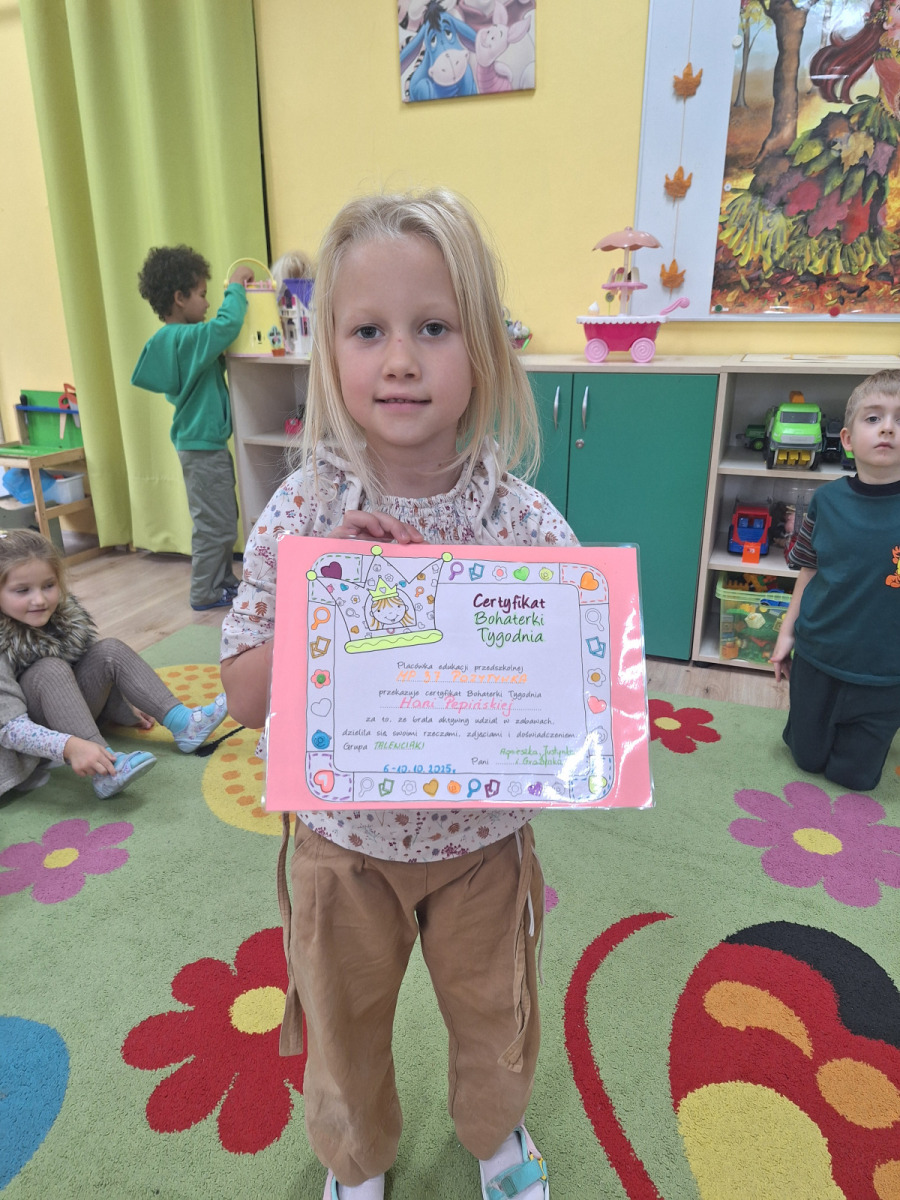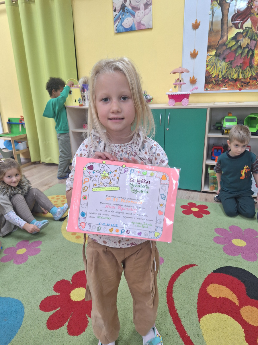Pierwszą w tym roku szkolnym Bohaterką Tygodnia w grupie Talenciaków była Hania. Dziewczynka wraz z rodzicami wypełniła Książkę Bohatera, z której dowiedzieliśmy się wiele na temat upodobań i sympatii Hani. Ponadto nasza bohaterka przyniosła do przedszkola swoje zabawki i książki, którymi chętnie dzieliła się z kolegami i koleżankami z grupy.