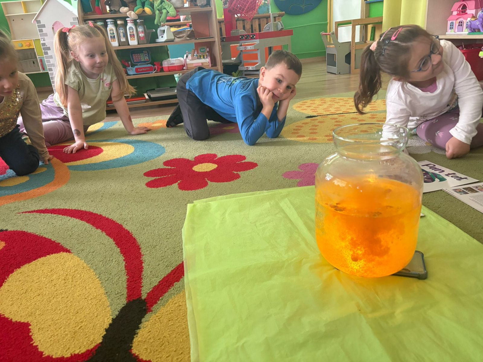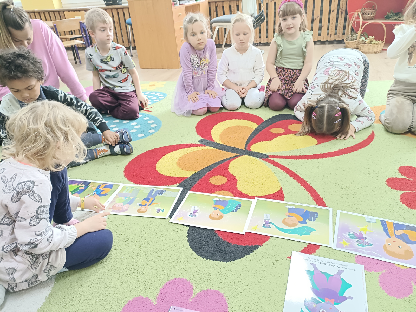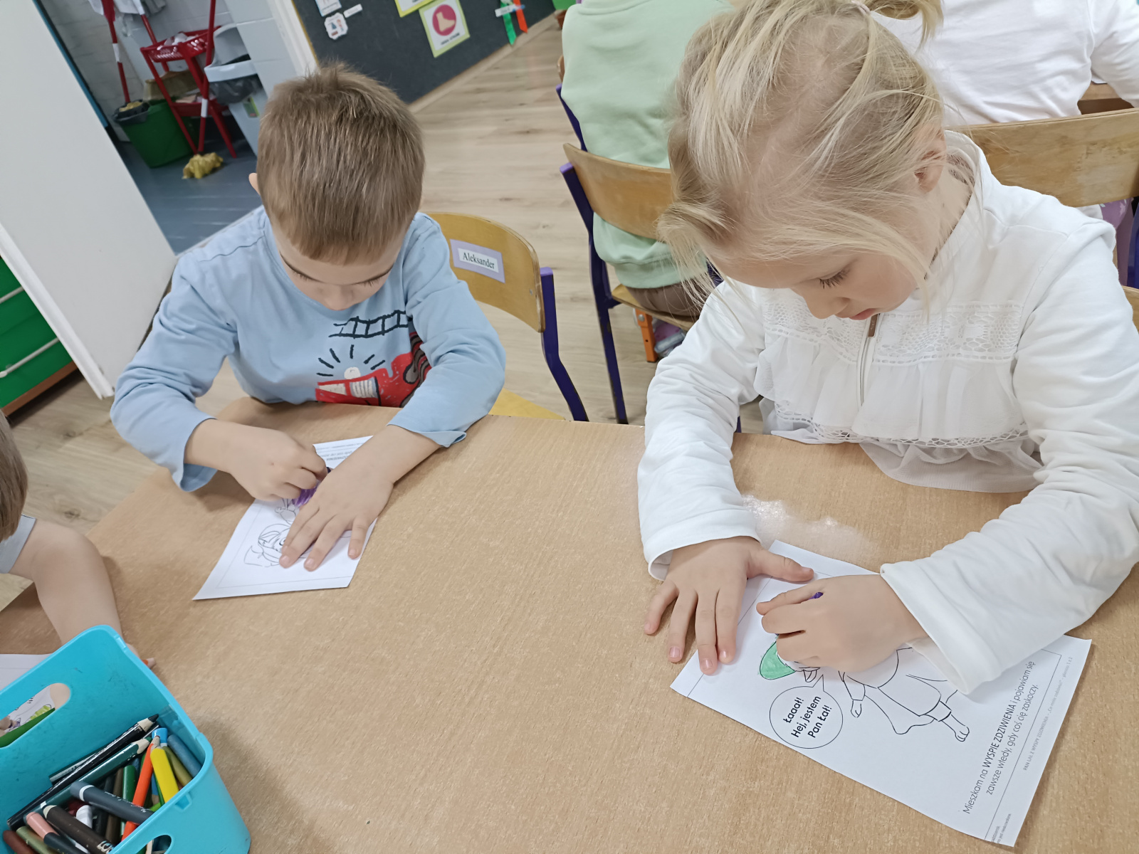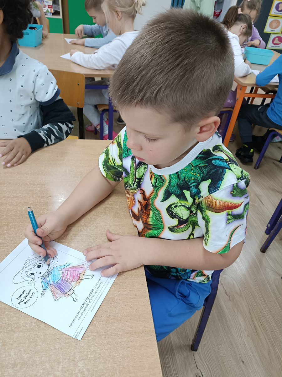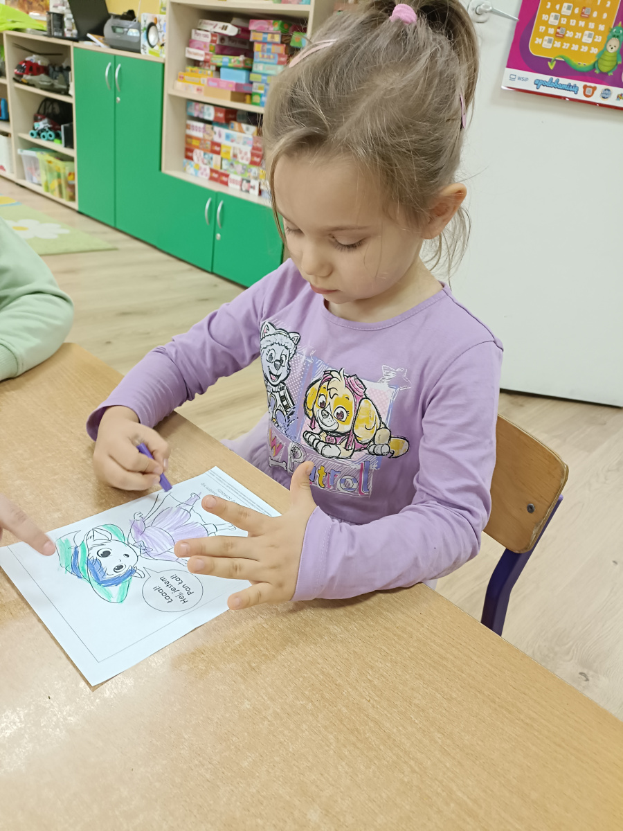 Pan Łał to kolejny Czuciak z Krainy Emocji, który zamieszkuje wyspę zdziwienia. Podczas zajęć przedszkolaki odkrywały, czym jest zdziwienie i w jakich sytuacjach może się pojawić. Rozmawialiśmy o tym, że zdziwienie może być przyjemne, jak i nieco zaskakujące, ale zawsze pomaga nam poznawać świat i uczyć się czegoś nowego.