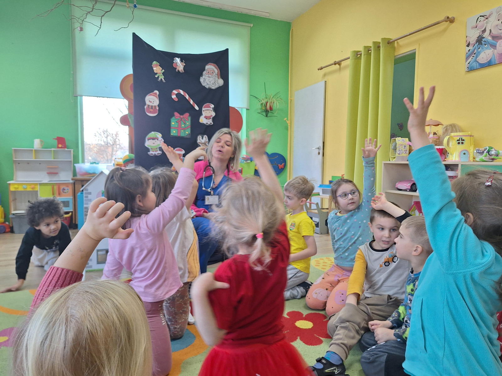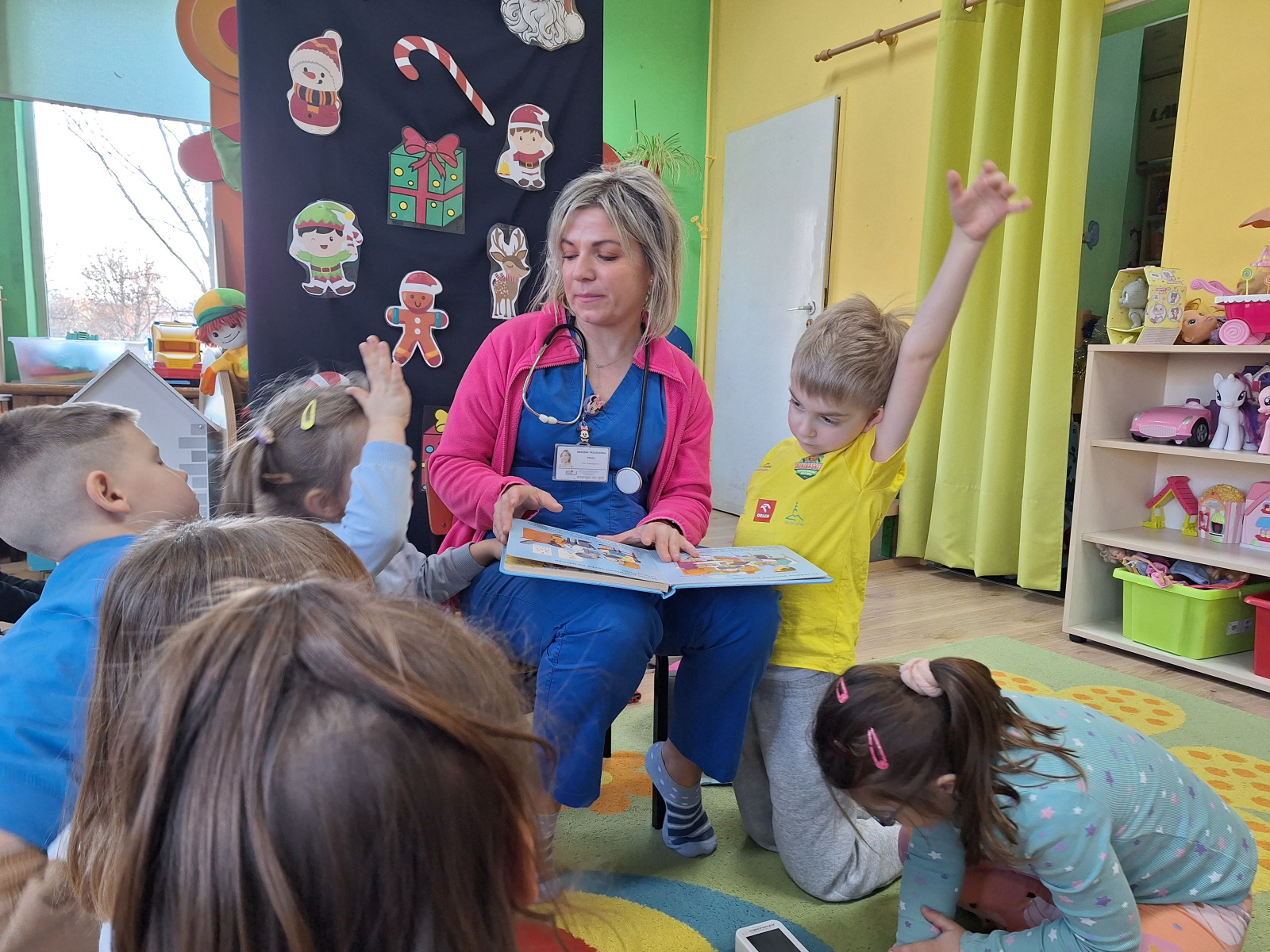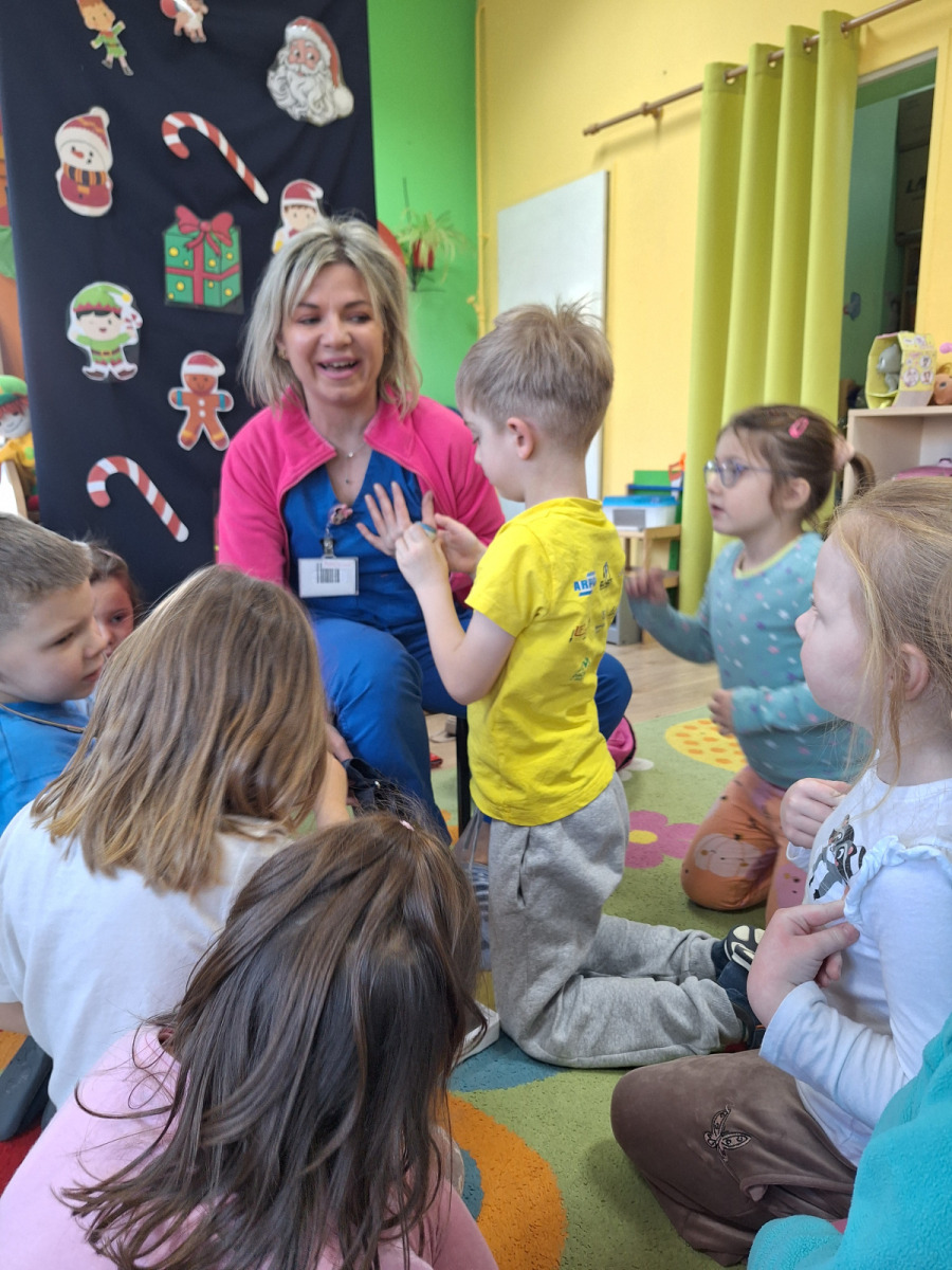 Kolejną Bohaterką w grupie Talenciaków była Pola. Ploeczka z pomocą Książki Bohatera opowiedziała nam o sobie, swojej rodzinie i przyjaciołach. Odwiedziła nas również mama naszej Bohaterki. Pani Marzena przeczytała dzieciom książeczkę i przybliżyła im zawód pielęgniarki. Przedszkolaki miały okazję zmierzyć ciśnienie, sprawdzić sobie temperaturę i posłuchać serca. To była wspaniała lekcja przez zabawę.