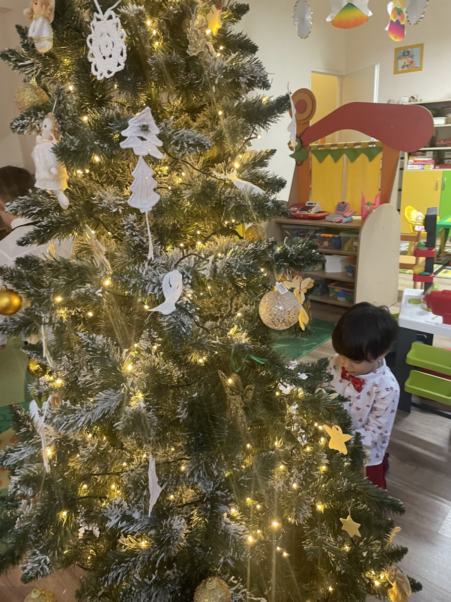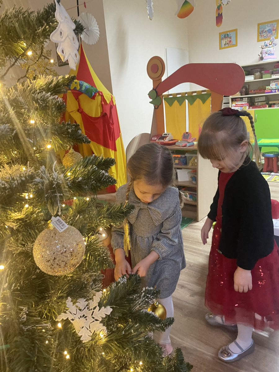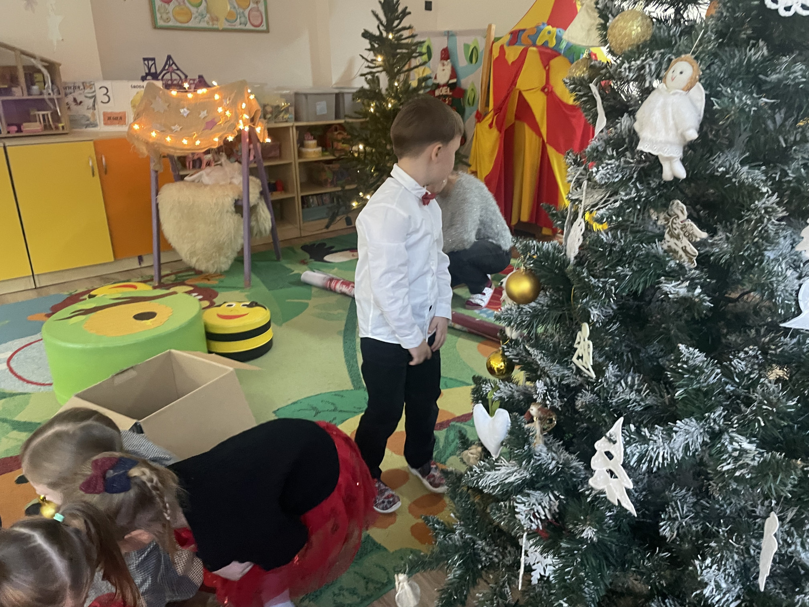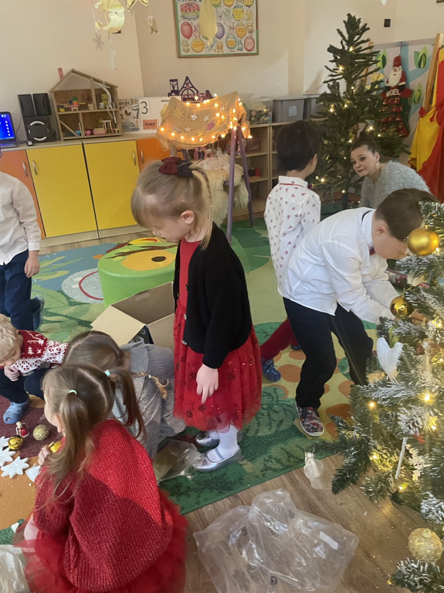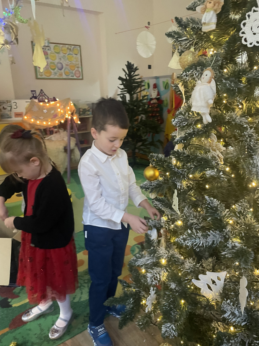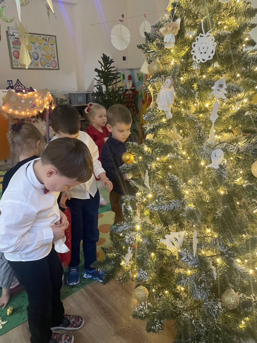 Choinka wygląda prześlicznie. Atmosfera w przedszkolu i wa naszej sali od razu zrobiła się świąteczna i bajkowa.