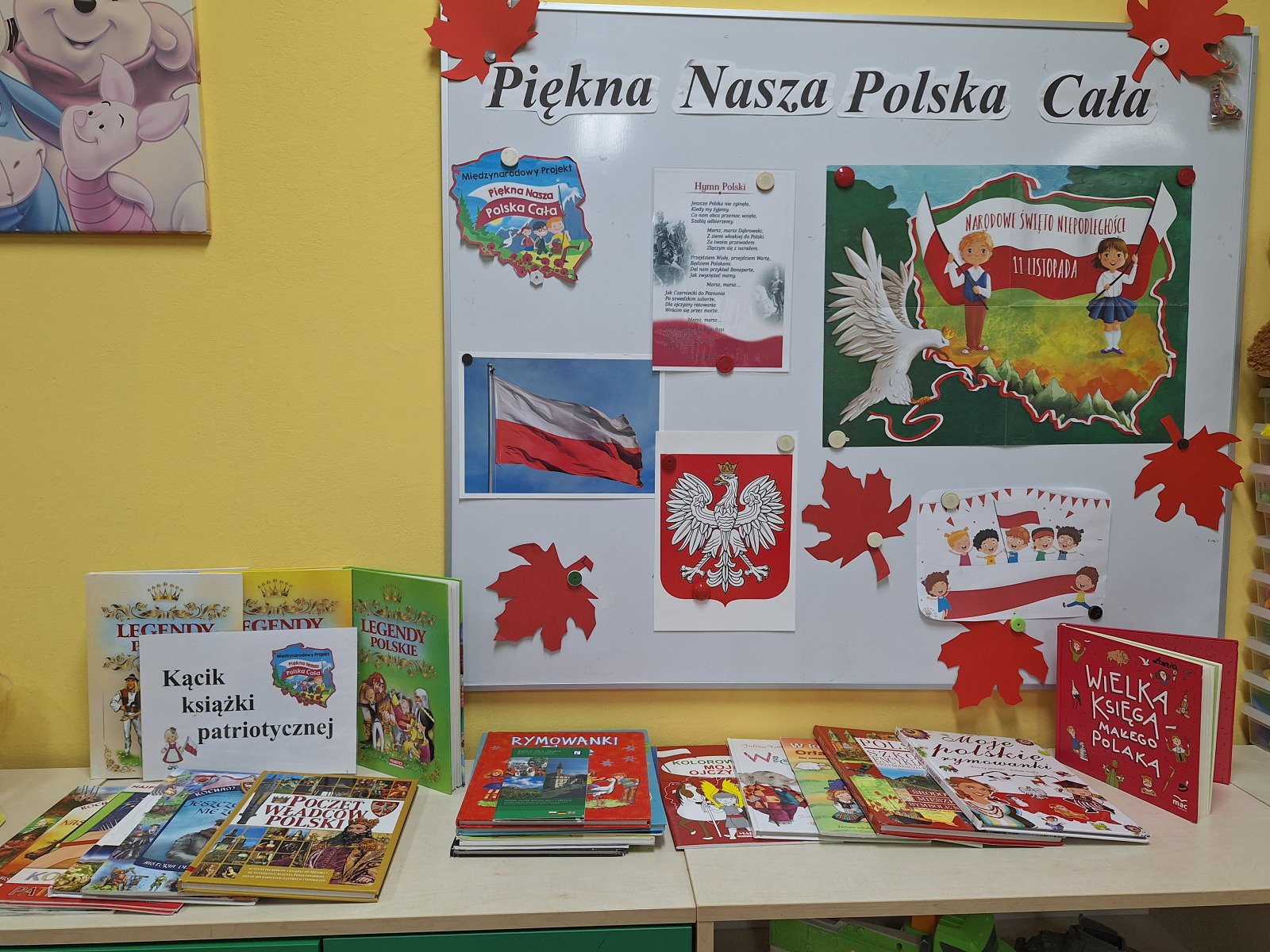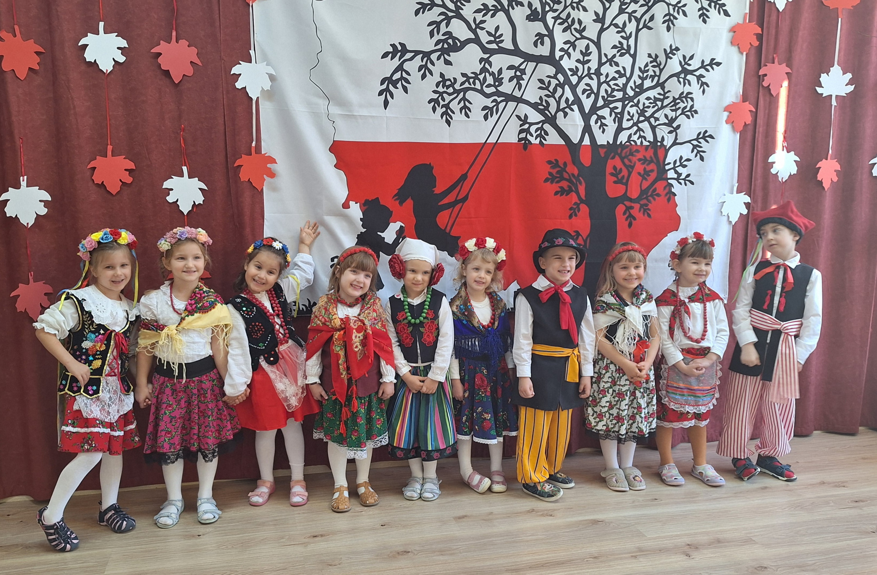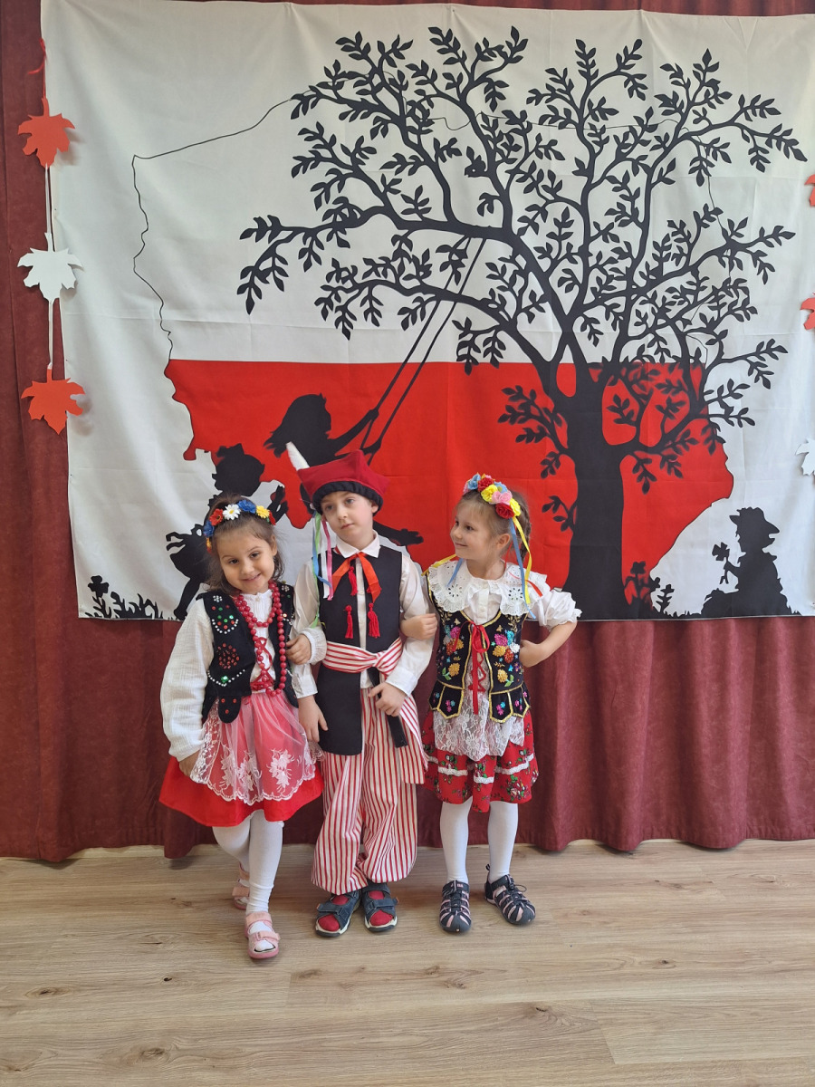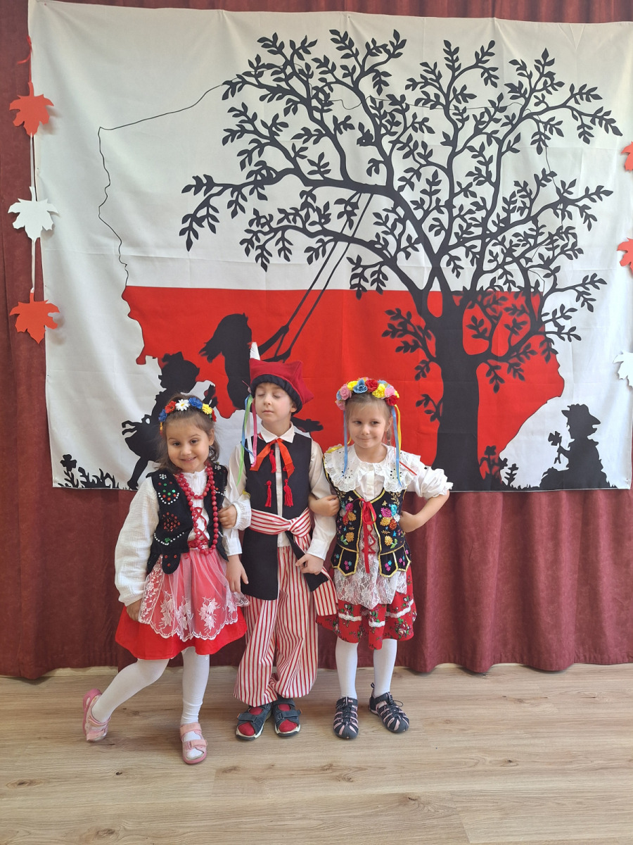 Jak co roku, w okolicach jedenastego listopada obchodzimy w naszym przedszkolu Tydzień Niepodległościowy. W czasie tego tygodnia wiele się dzieje w naszej przedszkolnej społeczności. Tak było i w tym roku. Obchody zaczęliśmy tradycyjnie udekorowaniem sal i stworzeniem kącików patriotycznych, a w kolejnych dniach odbyły się takie atrakcje jak: Kino Malucha, czyli pokaz starych polskich bajek, „biało-czerwone zawody sportowe”, „Dzień Stroju Ludowego” – pokaz mody, poznawanie przygotowanie i degustacja potraw „z przepisu babci i dziadka”, wykonanie i wystawa prac „kokarda narodowa”, a zwieńczeniem obchodów był uroczysty apel zakończony odśpiewaniem Mazurka Dąbrowskiego. Oprócz tego w trakcie zajęć przypominaliśmy sobie symbole narodowe, słuchaliśmy polskich legend, poznawaliśmy różne ciekawostki dotyczące naszego kraju, a także postaci wielkich Polaków.