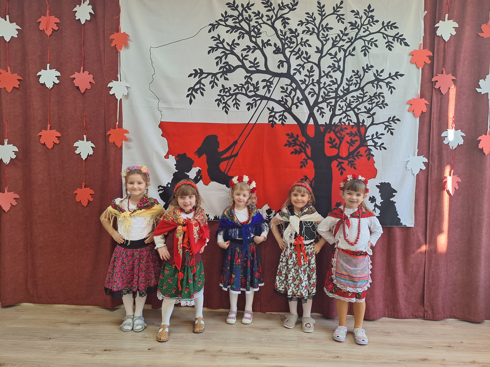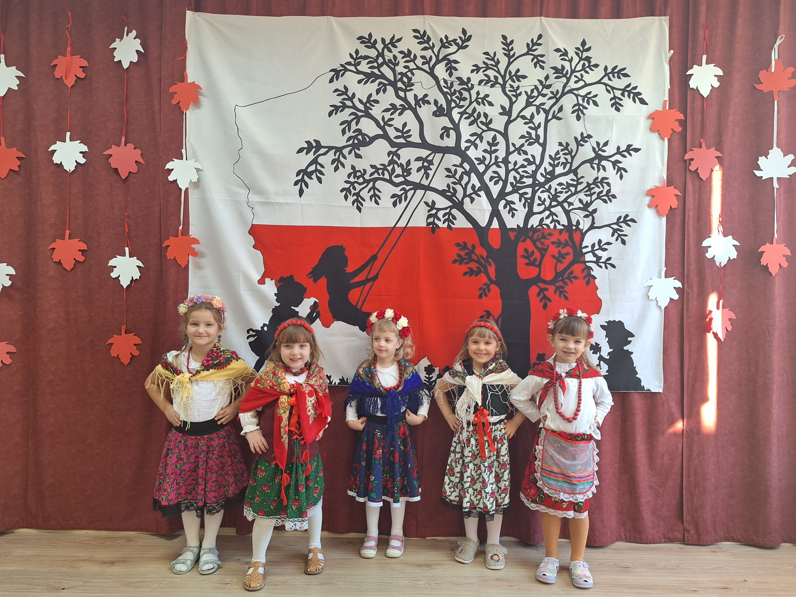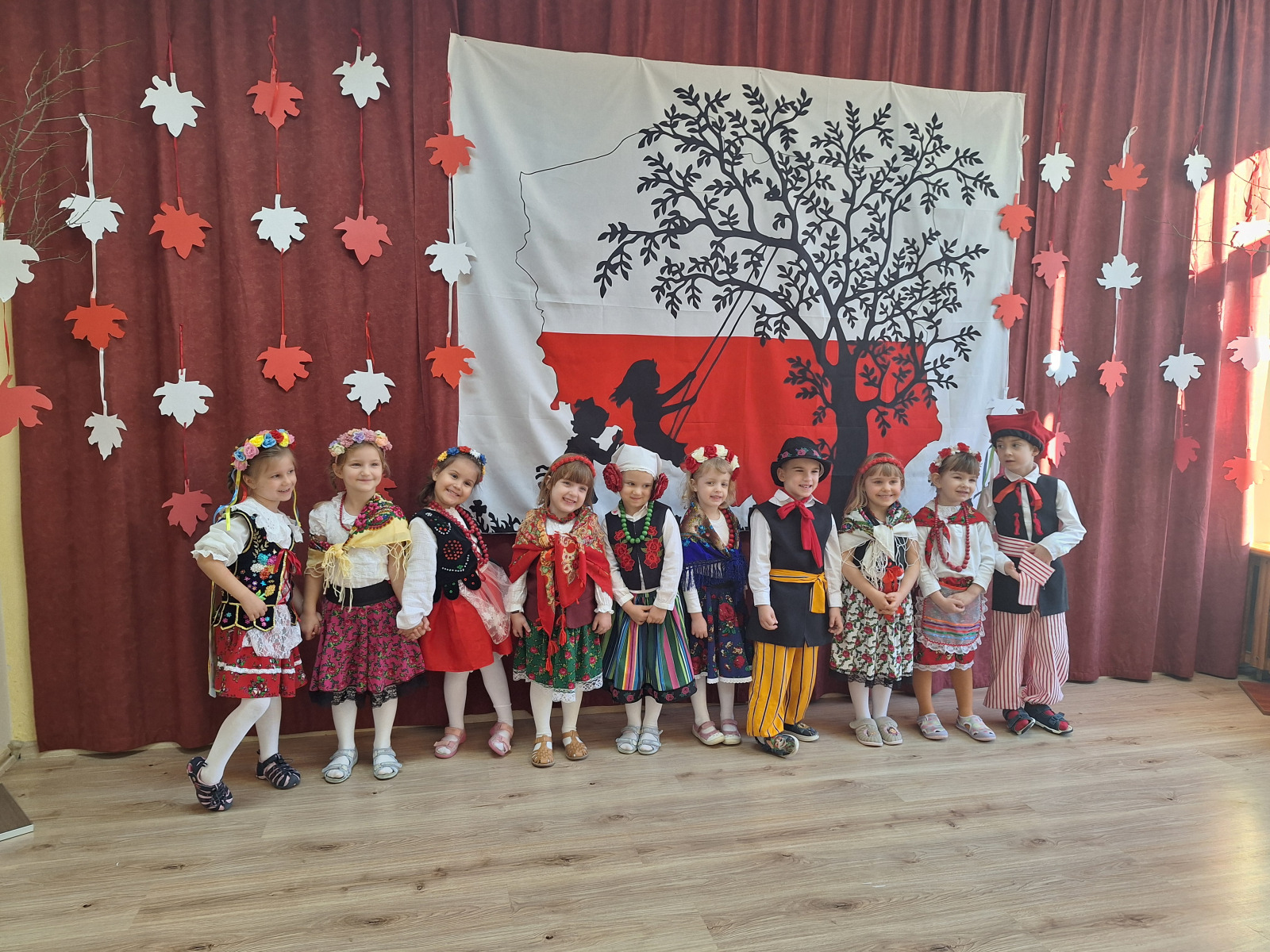 Jak co roku, w okolicach jedenastego listopada obchodzimy w naszym przedszkolu Tydzień Niepodległościowy. W czasie tego tygodnia wiele się dzieje w naszej przedszkolnej społeczności. Tak było i w tym roku. Obchody zaczęliśmy tradycyjnie udekorowaniem sal i stworzeniem kącików patriotycznych, a w kolejnych dniach odbyły się takie atrakcje jak: Kino Malucha, czyli pokaz starych polskich bajek, „biało-czerwone zawody sportowe”, „Dzień Stroju Ludowego” – pokaz mody, poznawanie przygotowanie i degustacja potraw „z przepisu babci i dziadka”, wykonanie i wystawa prac „kokarda narodowa”, a zwieńczeniem obchodów był uroczysty apel zakończony odśpiewaniem Mazurka Dąbrowskiego. Oprócz tego w trakcie zajęć przypominaliśmy sobie symbole narodowe, słuchaliśmy polskich legend, poznawaliśmy różne ciekawostki dotyczące naszego kraju, a także postaci wielkich Polaków.