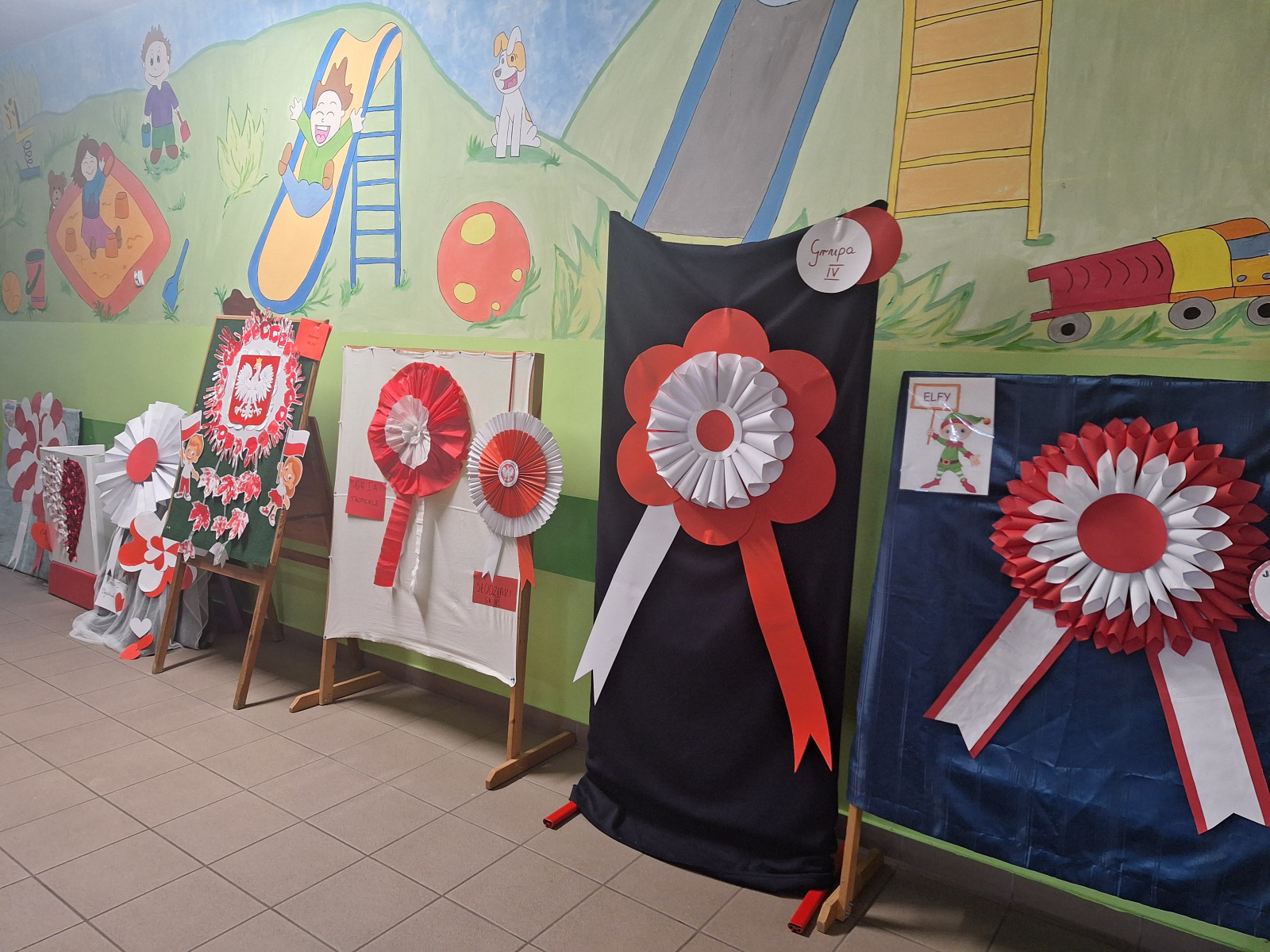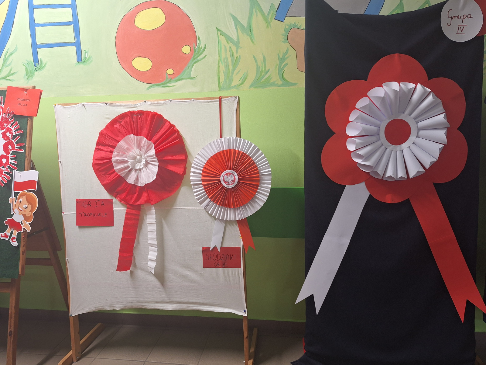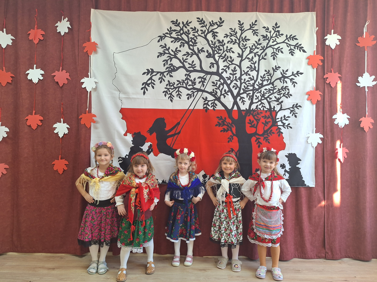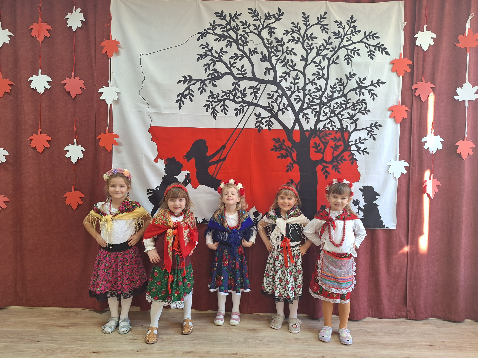 Jak co roku, w okolicach jedenastego listopada obchodzimy w naszym przedszkolu Tydzień Niepodległościowy. W czasie tego tygodnia wiele się dzieje w naszej przedszkolnej społeczności. Tak było i w tym roku. Obchody zaczęliśmy tradycyjnie udekorowaniem sal i stworzeniem kącików patriotycznych, a w kolejnych dniach odbyły się takie atrakcje jak: Kino Malucha, czyli pokaz starych polskich bajek, „biało-czerwone zawody sportowe”, „Dzień Stroju Ludowego” – pokaz mody, poznawanie przygotowanie i degustacja potraw „z przepisu babci i dziadka”, wykonanie i wystawa prac „kokarda narodowa”, a zwieńczeniem obchodów był uroczysty apel zakończony odśpiewaniem Mazurka Dąbrowskiego. Oprócz tego w trakcie zajęć przypominaliśmy sobie symbole narodowe, słuchaliśmy polskich legend, poznawaliśmy różne ciekawostki dotyczące naszego kraju, a także postaci wielkich Polaków.