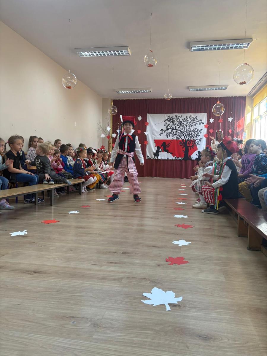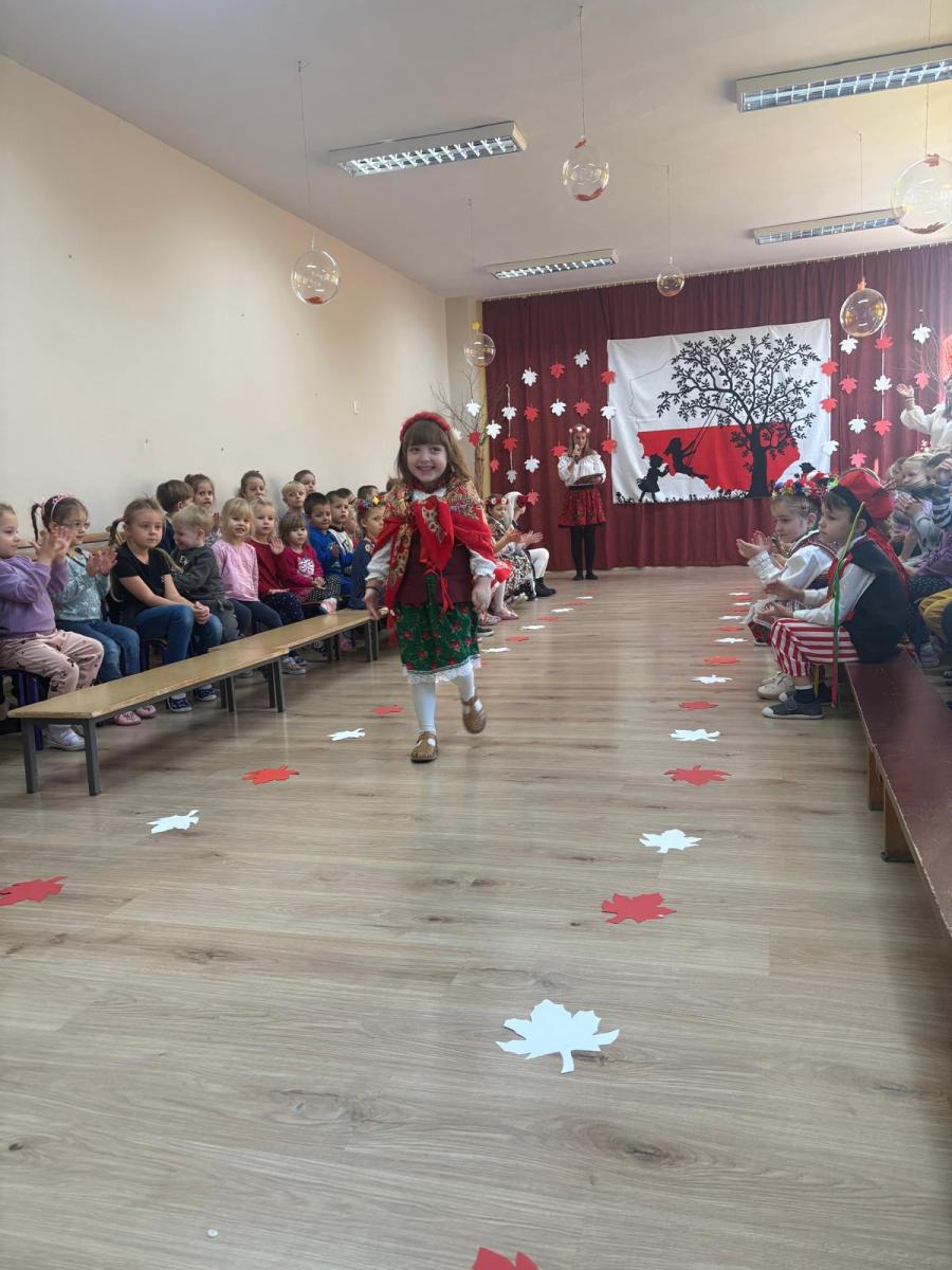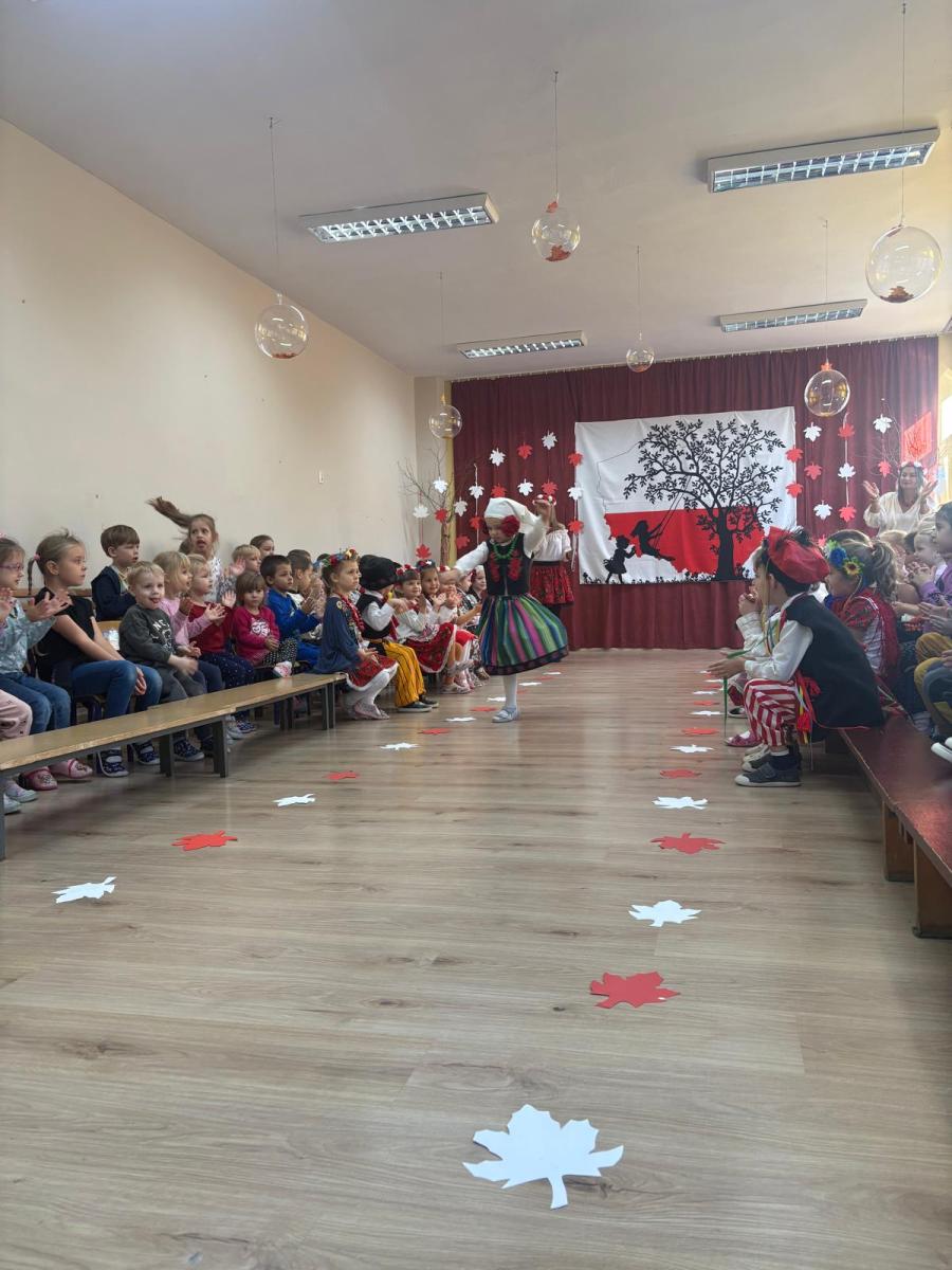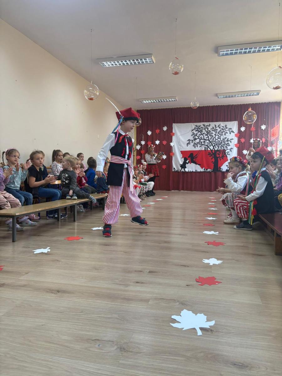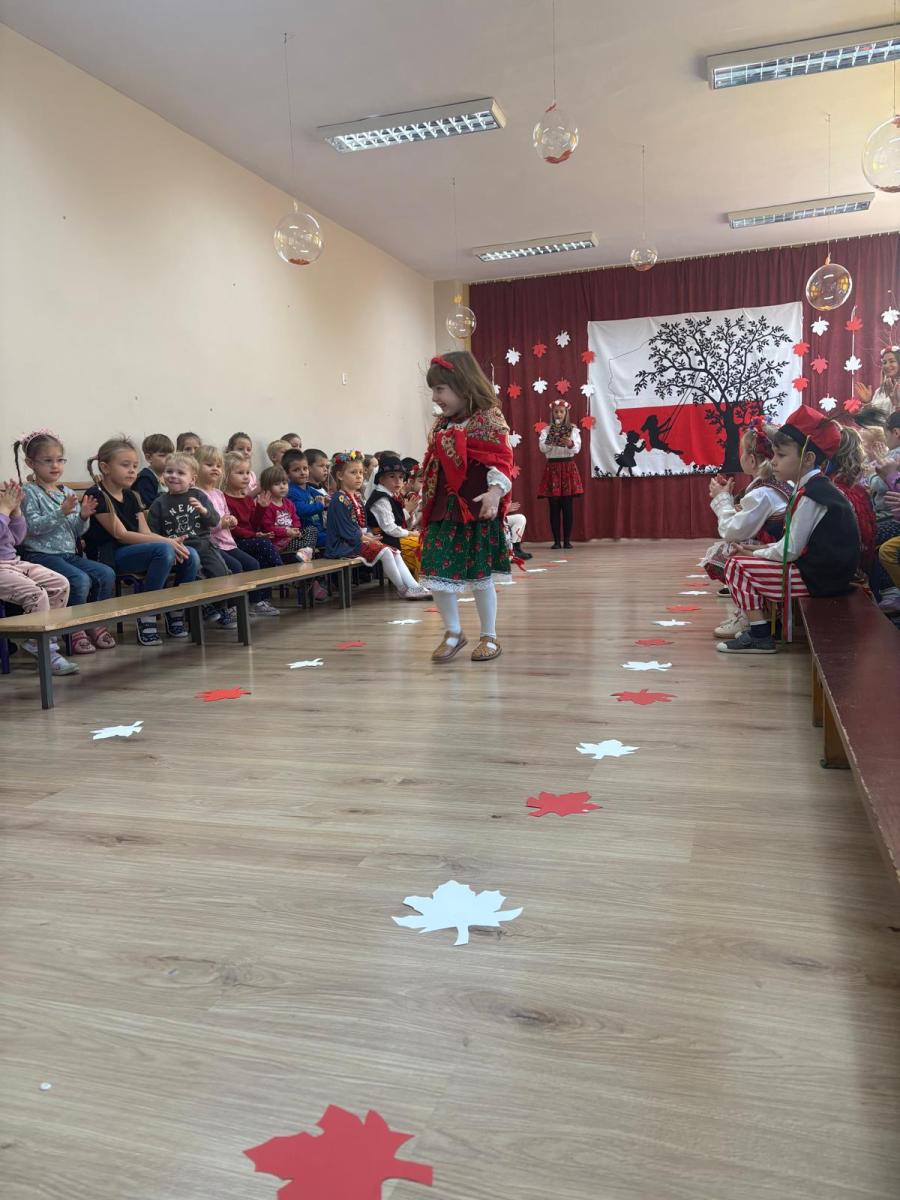 Jak co roku, w okolicach jedenastego listopada obchodzimy w naszym przedszkolu Tydzień Niepodległościowy. W czasie tego tygodnia wiele się dzieje w naszej przedszkolnej społeczności. Tak było i w tym roku. Obchody zaczęliśmy tradycyjnie udekorowaniem sal i stworzeniem kącików patriotycznych, a w kolejnych dniach odbyły się takie atrakcje jak: Kino Malucha, czyli pokaz starych polskich bajek, „biało-czerwone zawody sportowe”, „Dzień Stroju Ludowego” – pokaz mody, poznawanie przygotowanie i degustacja potraw „z przepisu babci i dziadka”, wykonanie i wystawa prac „kokarda narodowa”, a zwieńczeniem obchodów był uroczysty apel zakończony odśpiewaniem Mazurka Dąbrowskiego. Oprócz tego w trakcie zajęć przypominaliśmy sobie symbole narodowe, słuchaliśmy polskich legend, poznawaliśmy różne ciekawostki dotyczące naszego kraju, a także postaci wielkich Polaków.