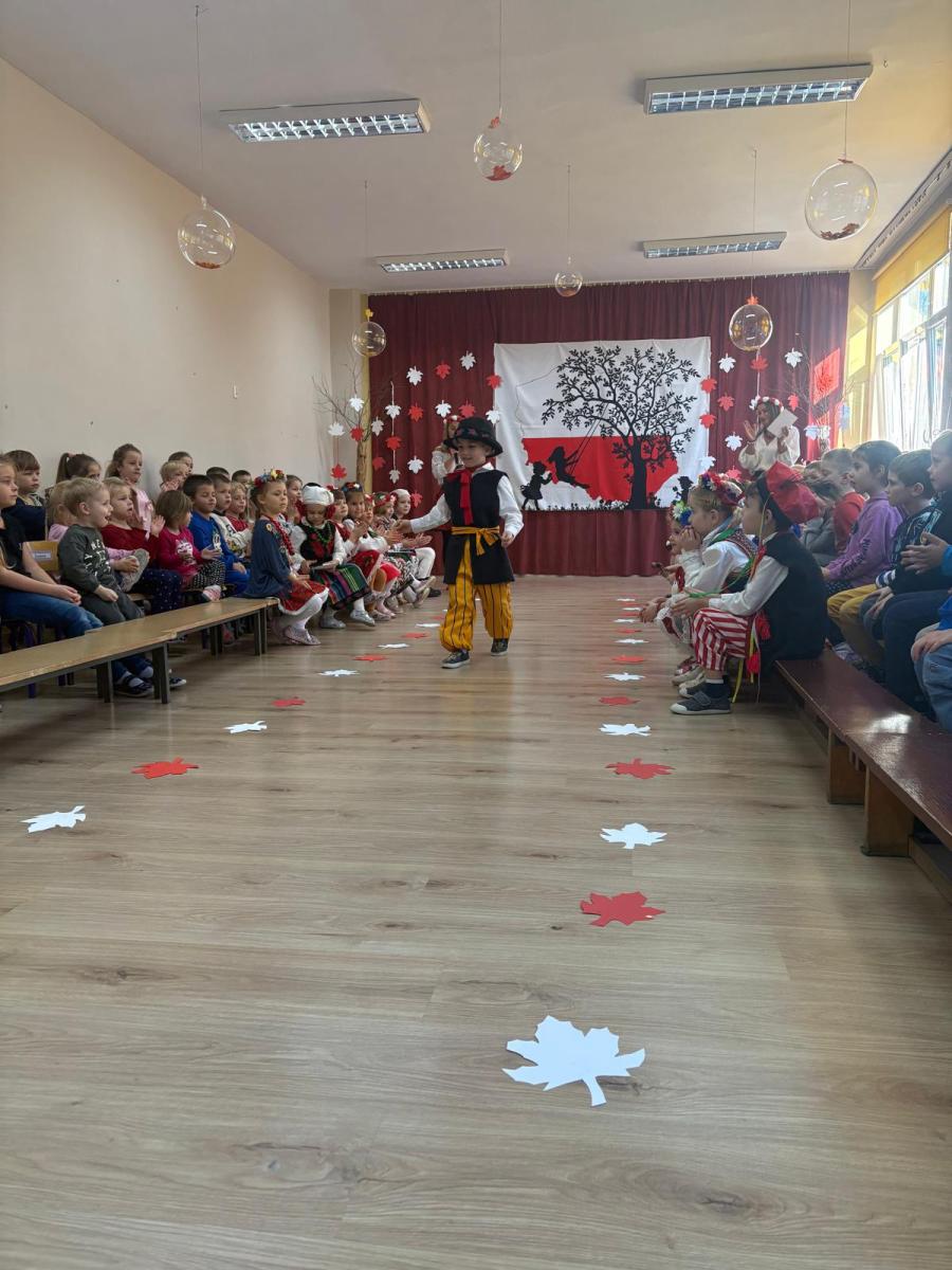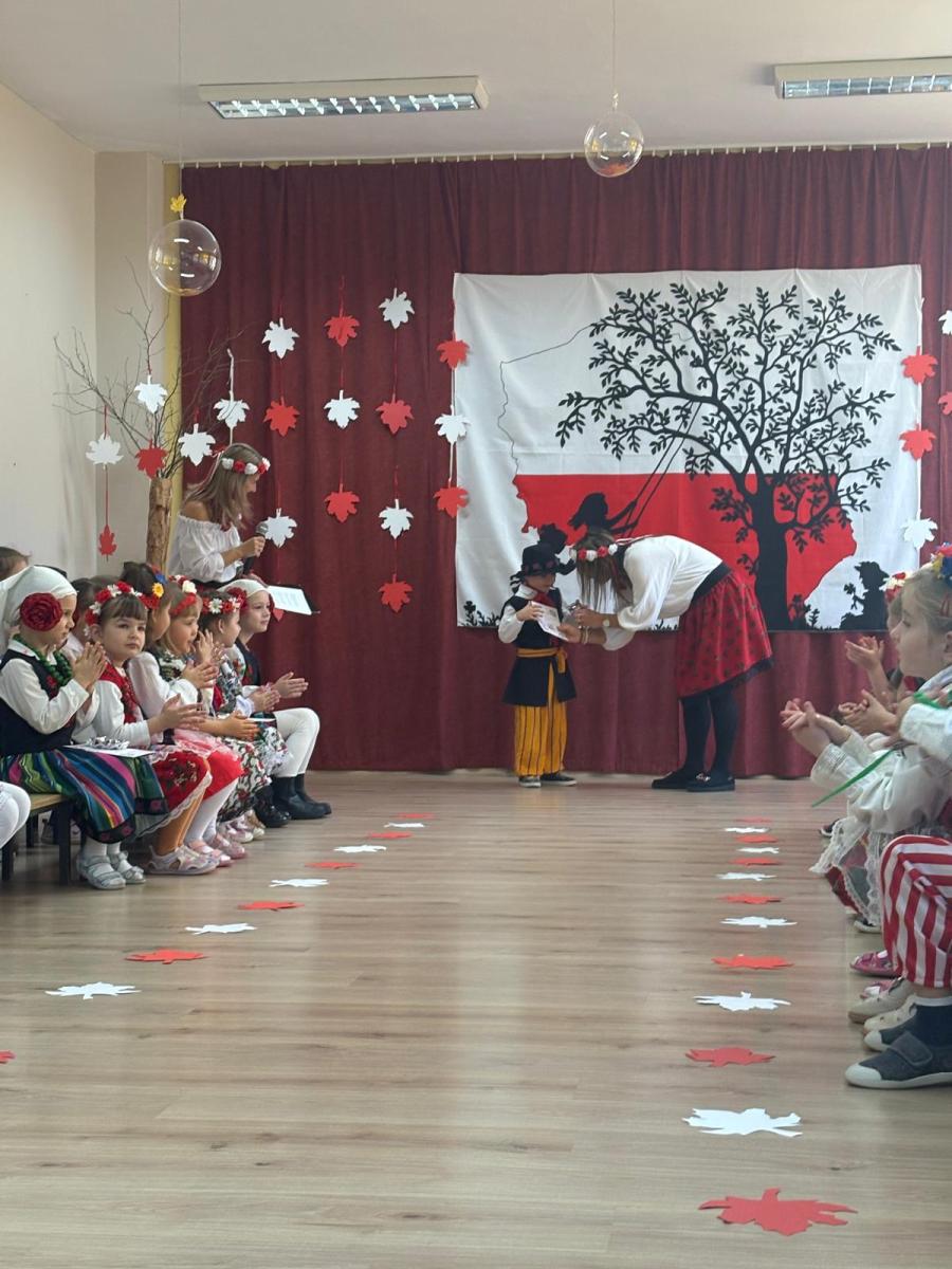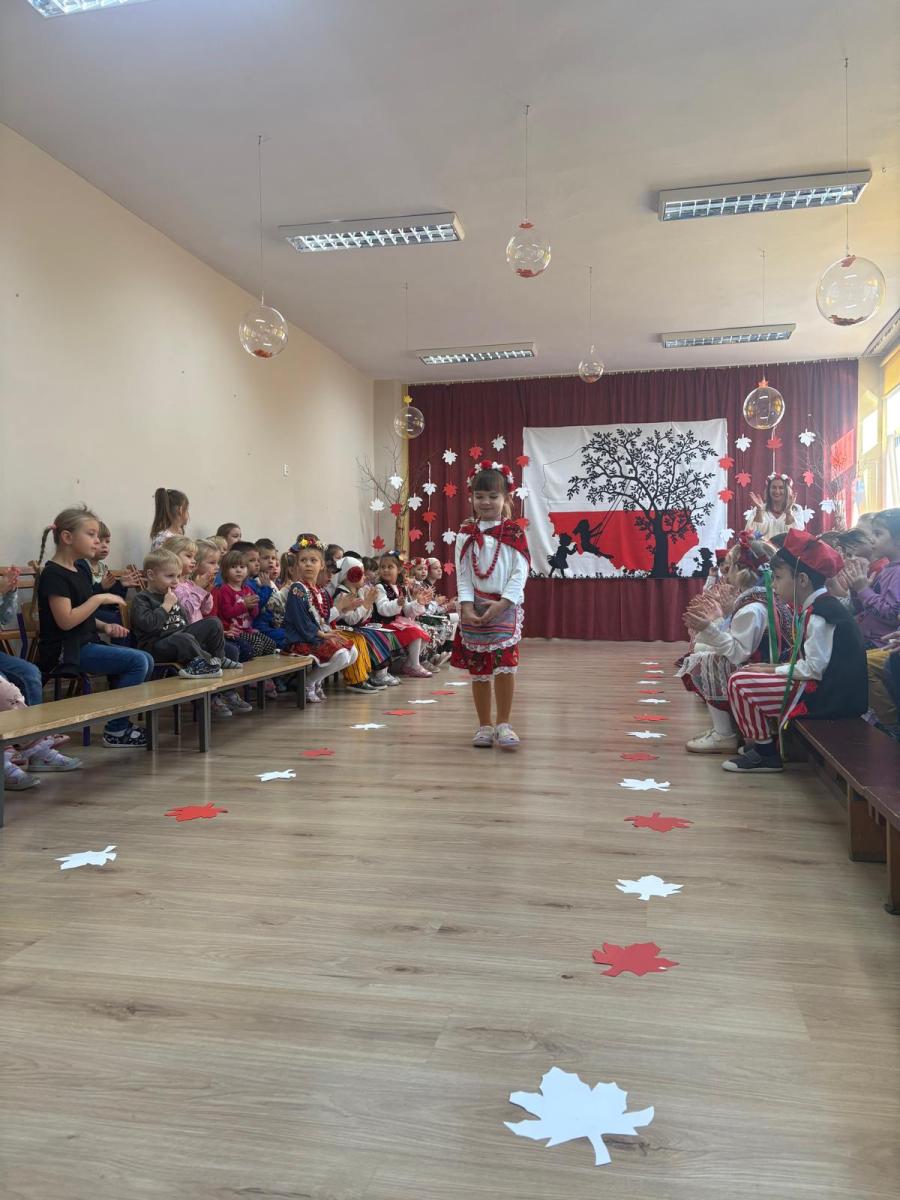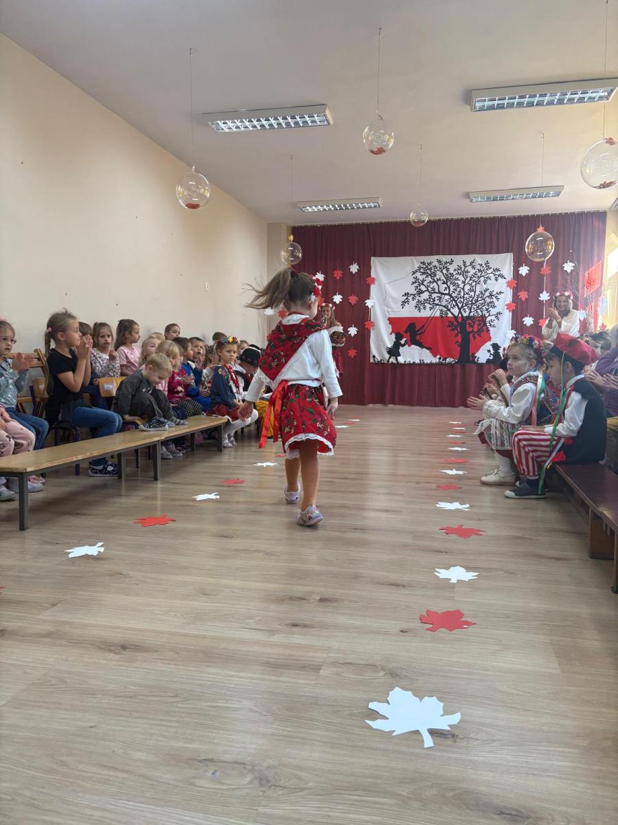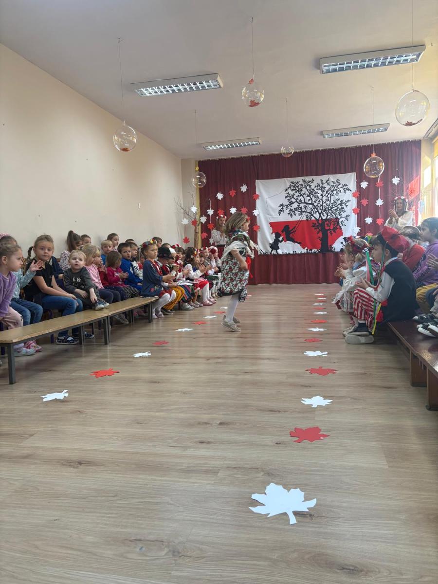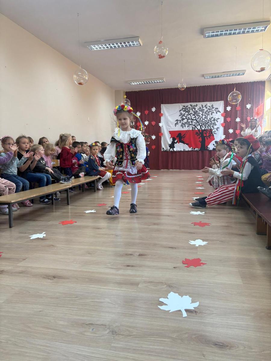 Jak co roku, w okolicach jedenastego listopada obchodzimy w naszym przedszkolu Tydzień Niepodległościowy. W czasie tego tygodnia wiele się dzieje w naszej przedszkolnej społeczności. Tak było i w tym roku. Obchody zaczęliśmy tradycyjnie udekorowaniem sal i stworzeniem kącików patriotycznych, a w kolejnych dniach odbyły się takie atrakcje jak: Kino Malucha, czyli pokaz starych polskich bajek, „biało-czerwone zawody sportowe”, „Dzień Stroju Ludowego” – pokaz mody, poznawanie przygotowanie i degustacja potraw „z przepisu babci i dziadka”, wykonanie i wystawa prac „kokarda narodowa”, a zwieńczeniem obchodów był uroczysty apel zakończony odśpiewaniem Mazurka Dąbrowskiego. Oprócz tego w trakcie zajęć przypominaliśmy sobie symbole narodowe, słuchaliśmy polskich legend, poznawaliśmy różne ciekawostki dotyczące naszego kraju, a także postaci wielkich Polaków.
