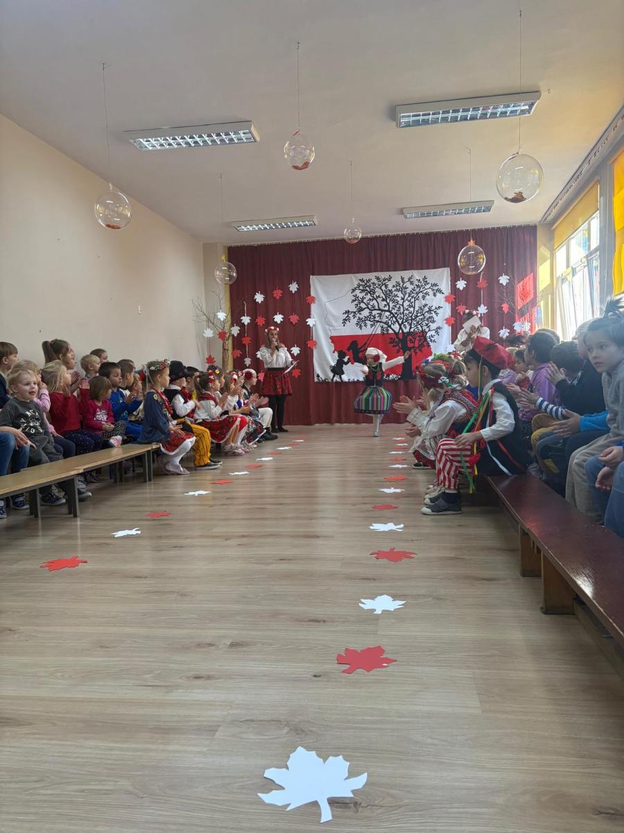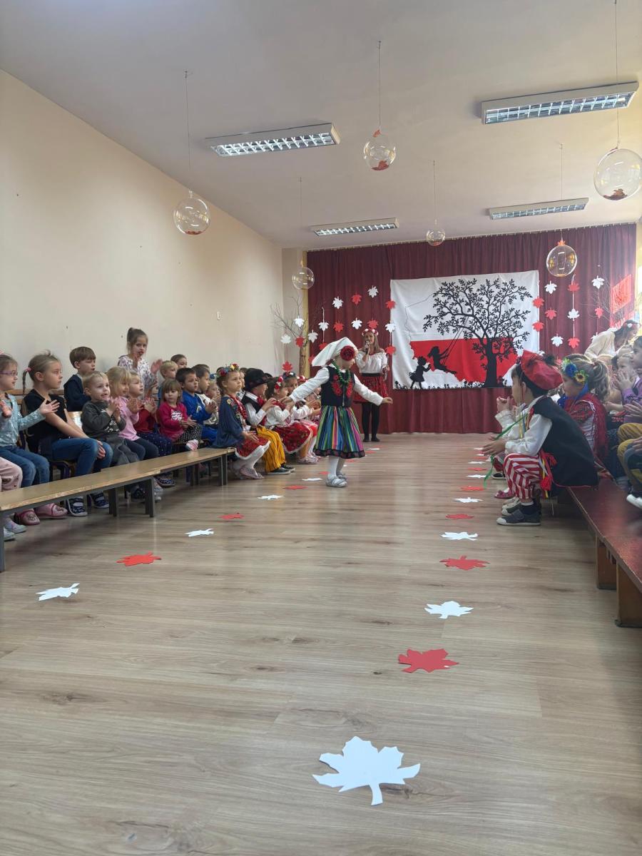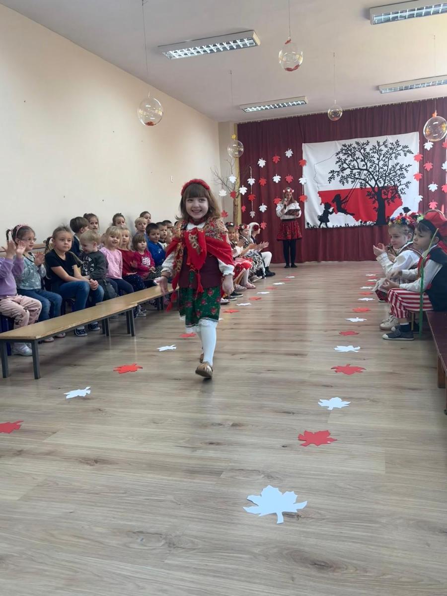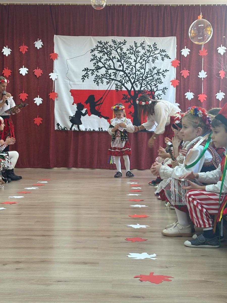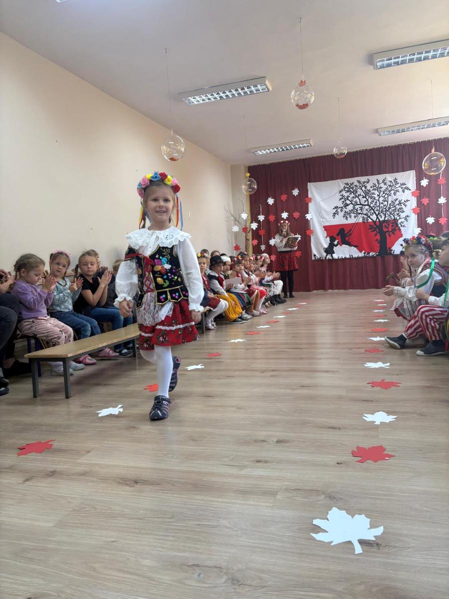 Jak co roku, w okolicach jedenastego listopada obchodzimy w naszym przedszkolu Tydzień Niepodległościowy. W czasie tego tygodnia wiele się dzieje w naszej przedszkolnej społeczności. Tak było i w tym roku. Obchody zaczęliśmy tradycyjnie udekorowaniem sal i stworzeniem kącików patriotycznych, a w kolejnych dniach odbyły się takie atrakcje jak: Kino Malucha, czyli pokaz starych polskich bajek, „biało-czerwone zawody sportowe”, „Dzień Stroju Ludowego” – pokaz mody, poznawanie przygotowanie i degustacja potraw „z przepisu babci i dziadka”, wykonanie i wystawa prac „kokarda narodowa”, a zwieńczeniem obchodów był uroczysty apel zakończony odśpiewaniem Mazurka Dąbrowskiego. Oprócz tego w trakcie zajęć przypominaliśmy sobie symbole narodowe, słuchaliśmy polskich legend, poznawaliśmy różne ciekawostki dotyczące naszego kraju, a także postaci wielkich Polaków.