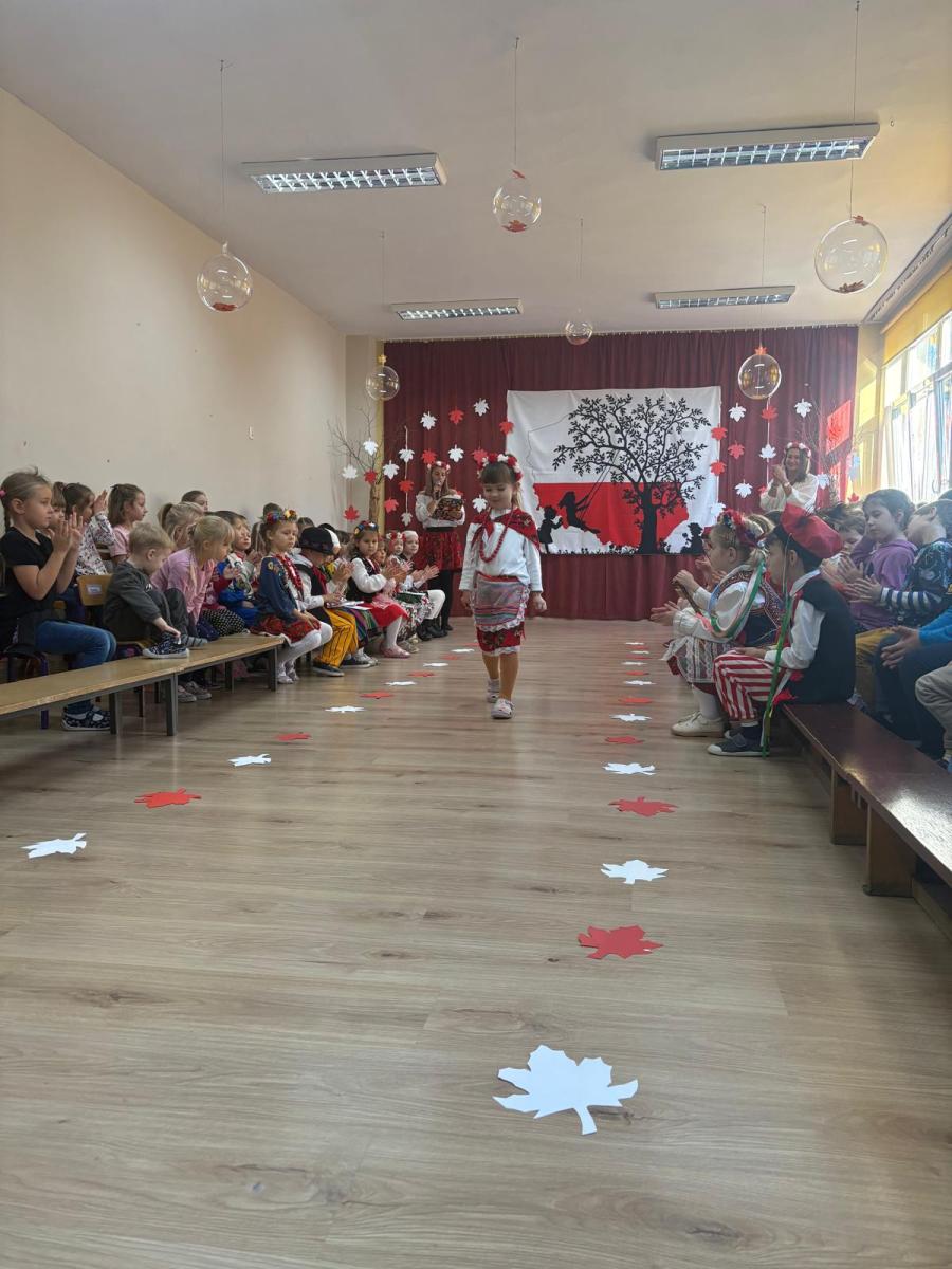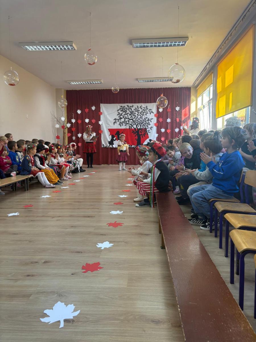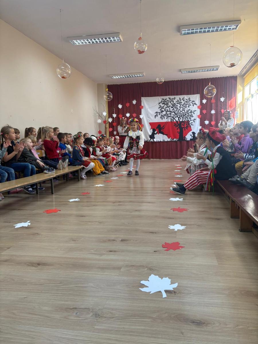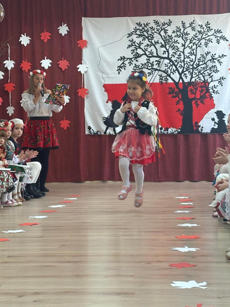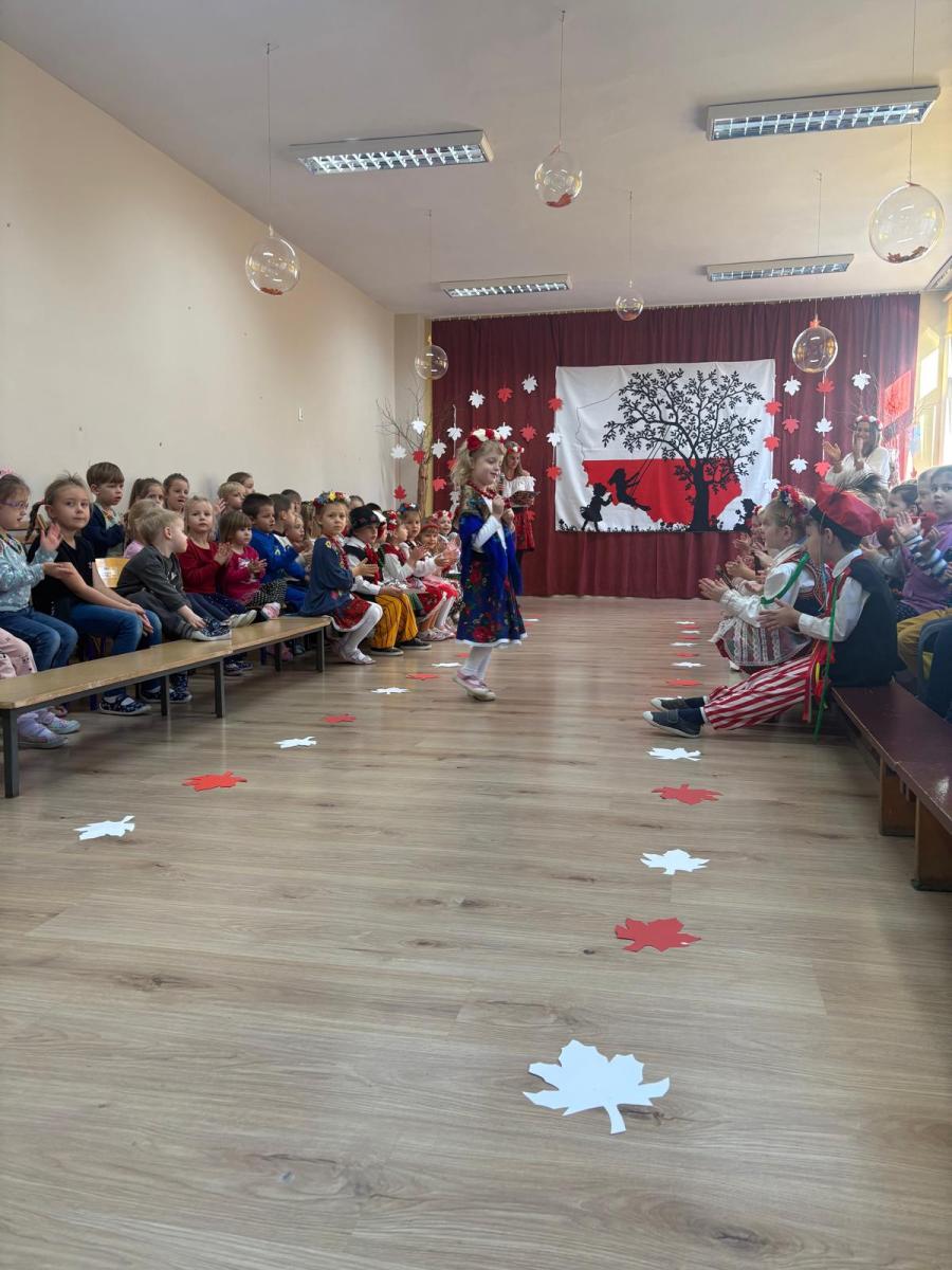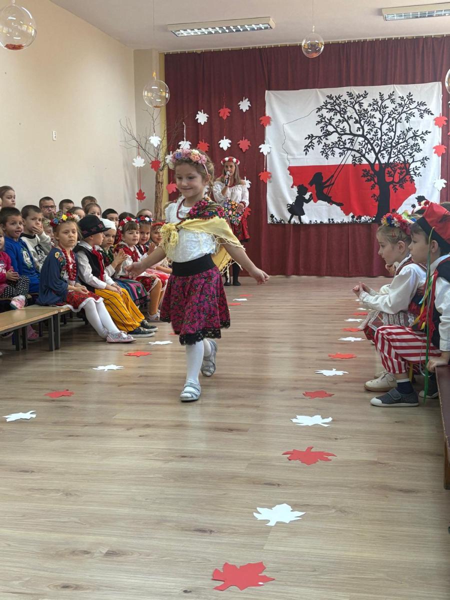 Jak co roku, w okolicach jedenastego listopada obchodzimy w naszym przedszkolu Tydzień Niepodległościowy. W czasie tego tygodnia wiele się dzieje w naszej przedszkolnej społeczności. Tak było i w tym roku. Obchody zaczęliśmy tradycyjnie udekorowaniem sal i stworzeniem kącików patriotycznych, a w kolejnych dniach odbyły się takie atrakcje jak: Kino Malucha, czyli pokaz starych polskich bajek, „biało-czerwone zawody sportowe”, „Dzień Stroju Ludowego” – pokaz mody, poznawanie przygotowanie i degustacja potraw „z przepisu babci i dziadka”, wykonanie i wystawa prac „kokarda narodowa”, a zwieńczeniem obchodów był uroczysty apel zakończony odśpiewaniem Mazurka Dąbrowskiego. Oprócz tego w trakcie zajęć przypominaliśmy sobie symbole narodowe, słuchaliśmy polskich legend, poznawaliśmy różne ciekawostki dotyczące naszego kraju, a także postaci wielkich Polaków.