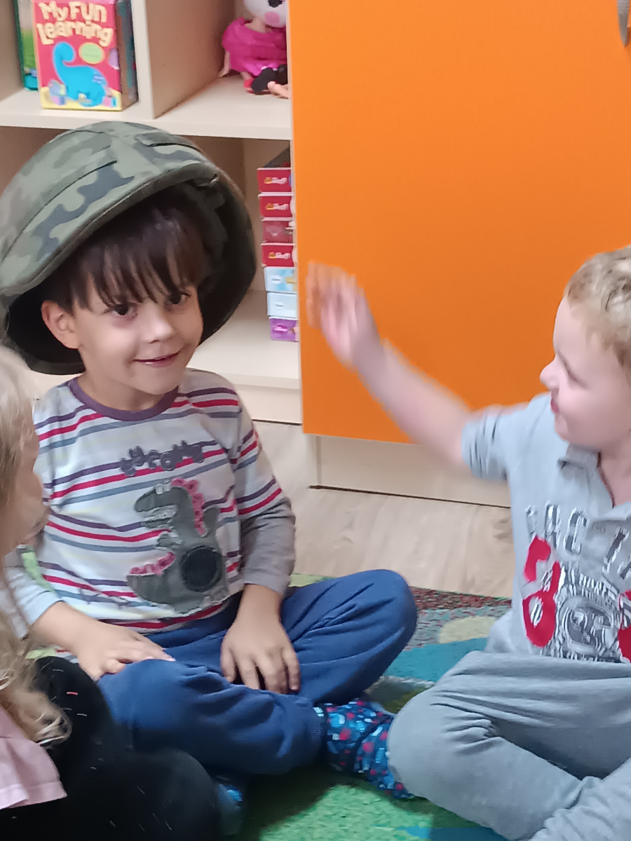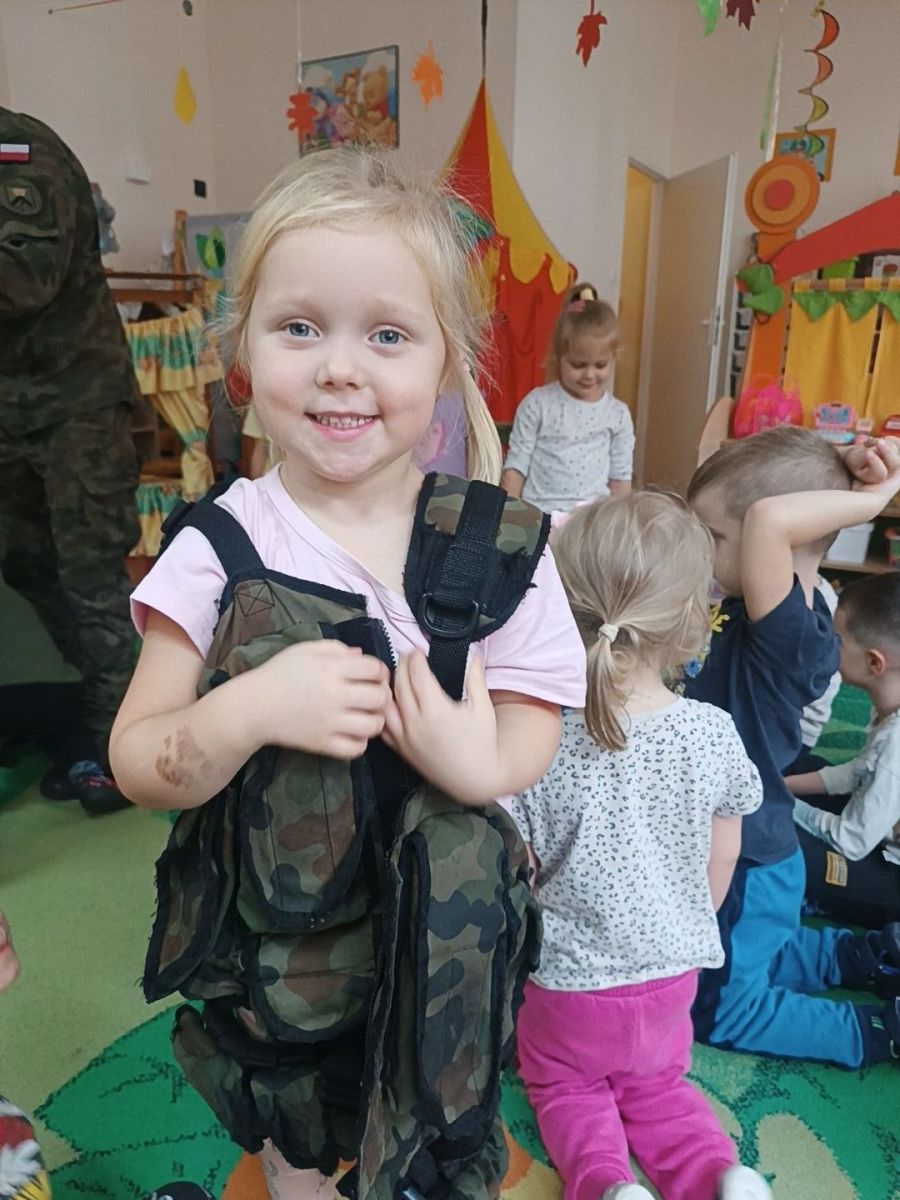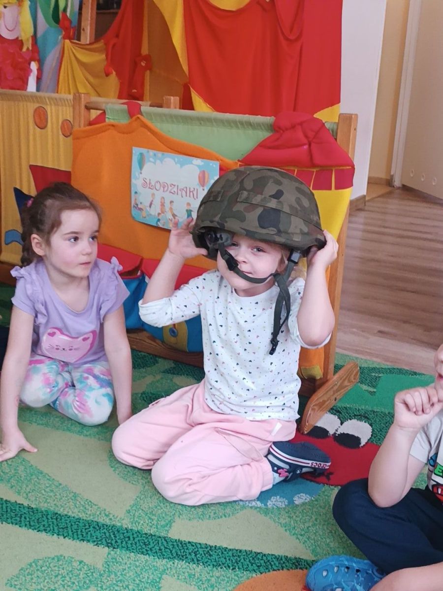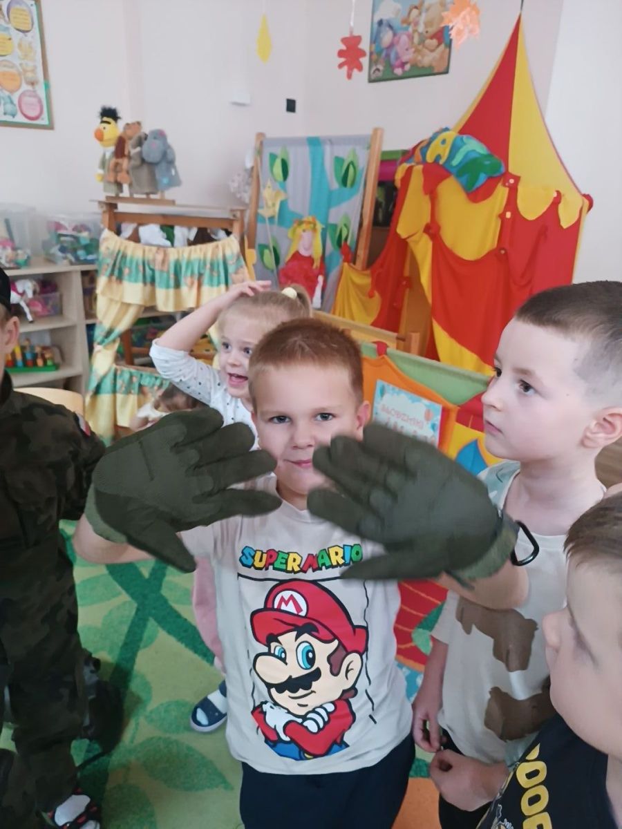 W minionym tygodniu bohaterem tygodnia był Tymon. Z tej okazji mieliśmy przyjemność gościć u nas tatę Tymona, który zapoznał dzieci z zawodem żołnierza. Dzieci z entuzjazmem oglądały elementy żołnierskiego stroju oraz wyposażenia. Nie zabrakło też nieodłącznego elementu – musztry.