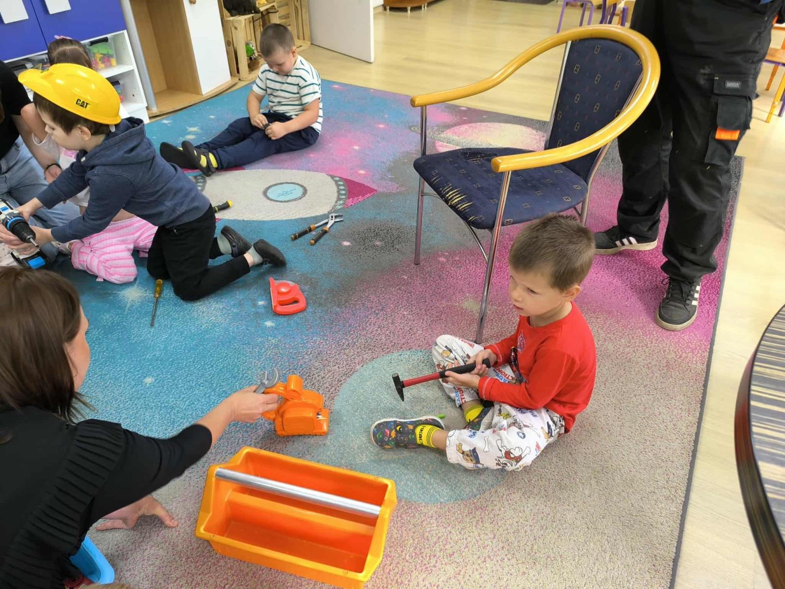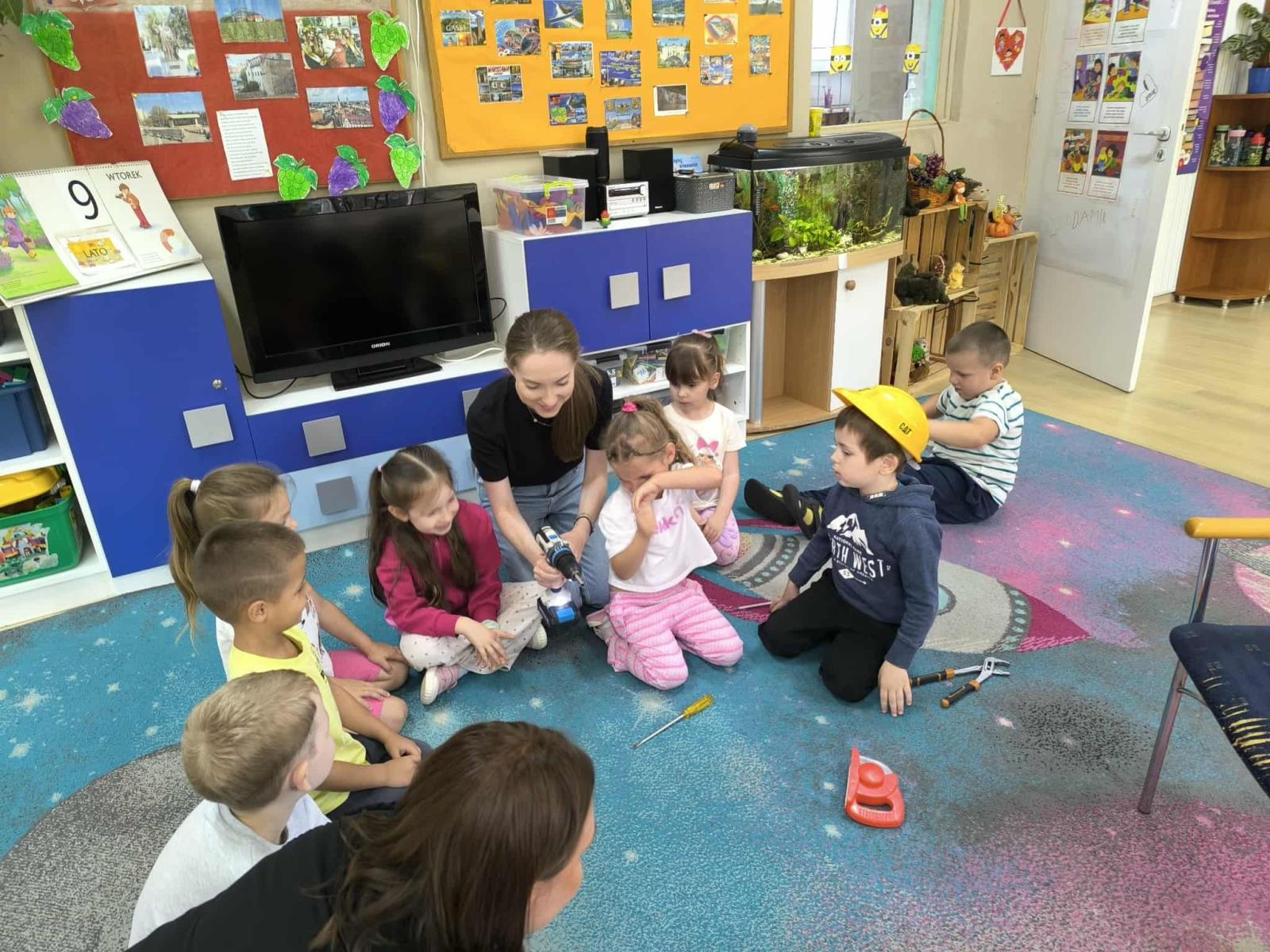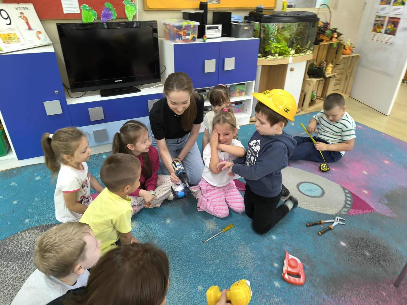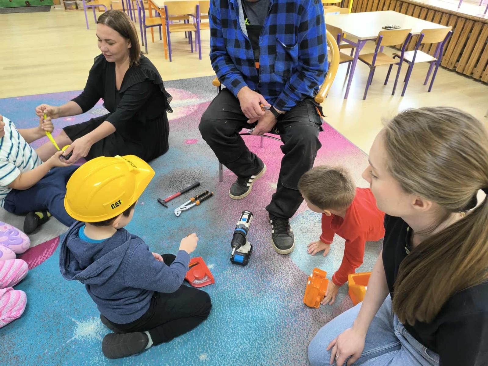 W związku z realizowanym tematem „Poznajemy otoczenie i pracowników”, w grupie „Czarodzieje” gościliśmy naszego przedszkolnego konserwatora Pana Marka. Pan Marek opowiedział na czym polega jego praca w przedszkolu oraz zaprezentował narzędzia, które wykorzystuje w pracy. Dzieci miały możliwość zadać Panu Markowi pytania oraz obejrzeć narzędzia z bliska. Było to bardzo miłe spotkanie.
