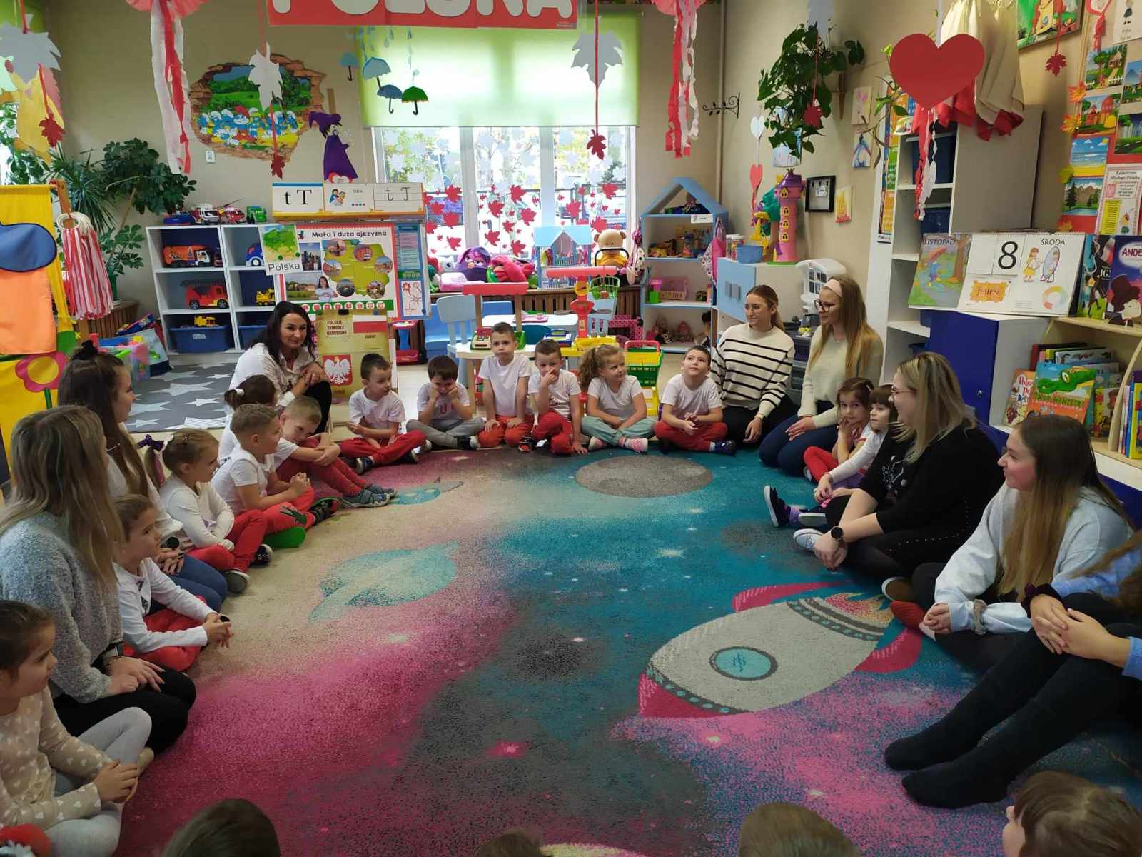 11 listopada, 2023 ZAJĘCIA DLA STUDENTEK ZIELONOGÓRSKIEGO UNIWERSYTETU # CZARODZIEJE W minioną środę gościliśmy w naszej grupie studentki z Uniwersytetu Zielonogórskiego. Obserwowały nasze zajęcia, na których poznawaliśmy literę t, T. Nie zabrakło zabaw sensorycznych, językowych, tanecznych i grafomotorycznych 🙂 Post Views: 85