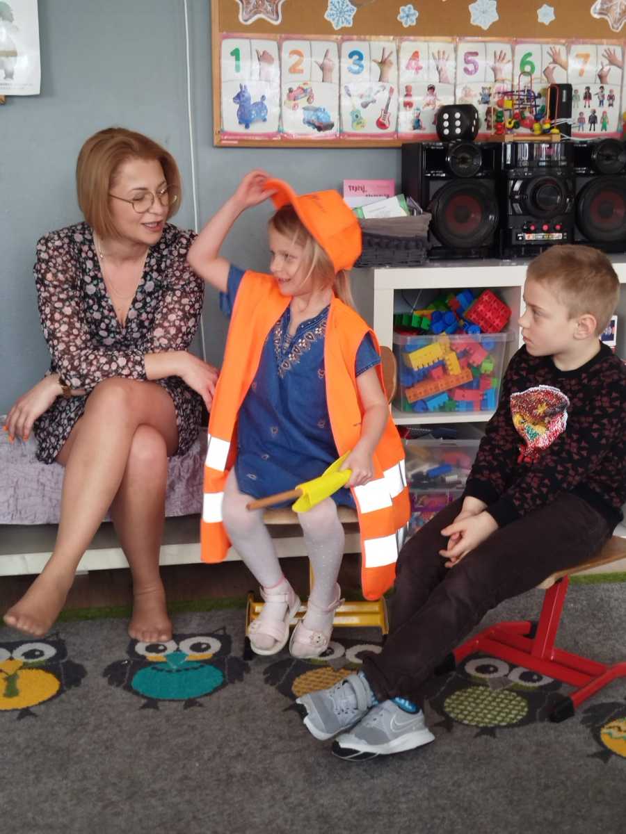 Naszą grupę odwiedził również Tata Faustynki (p. Tomek), który opowiedział o swojej pracy oraz przygotował dla dzieci zajęcia ze stolarki. Było to nowe doświadczenie nie tylko dla chłopców 🙂