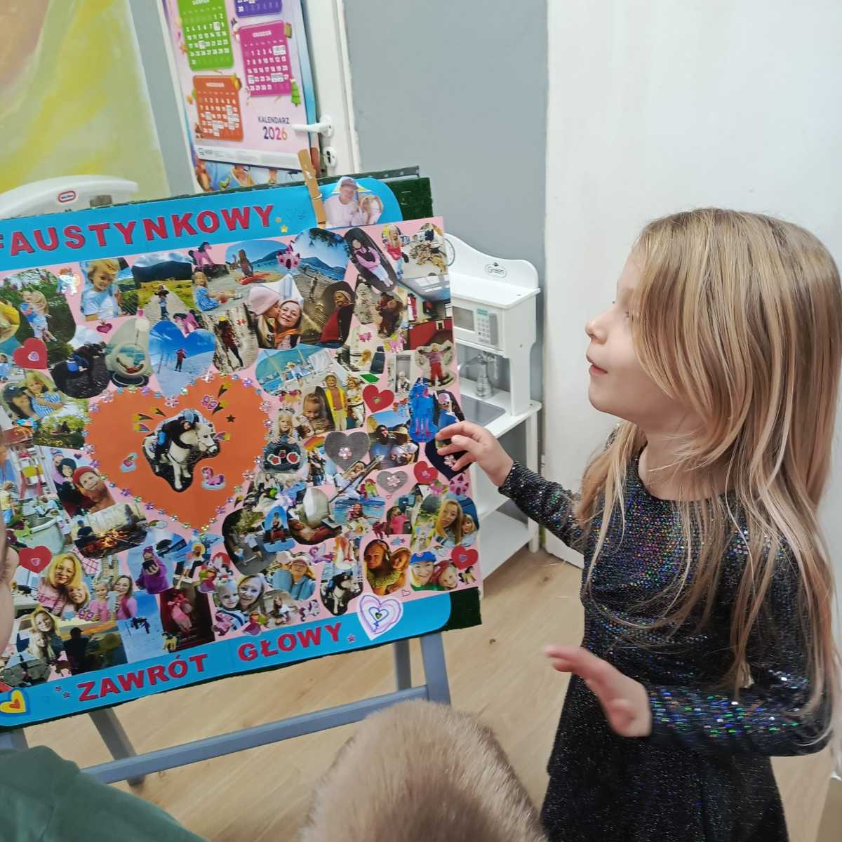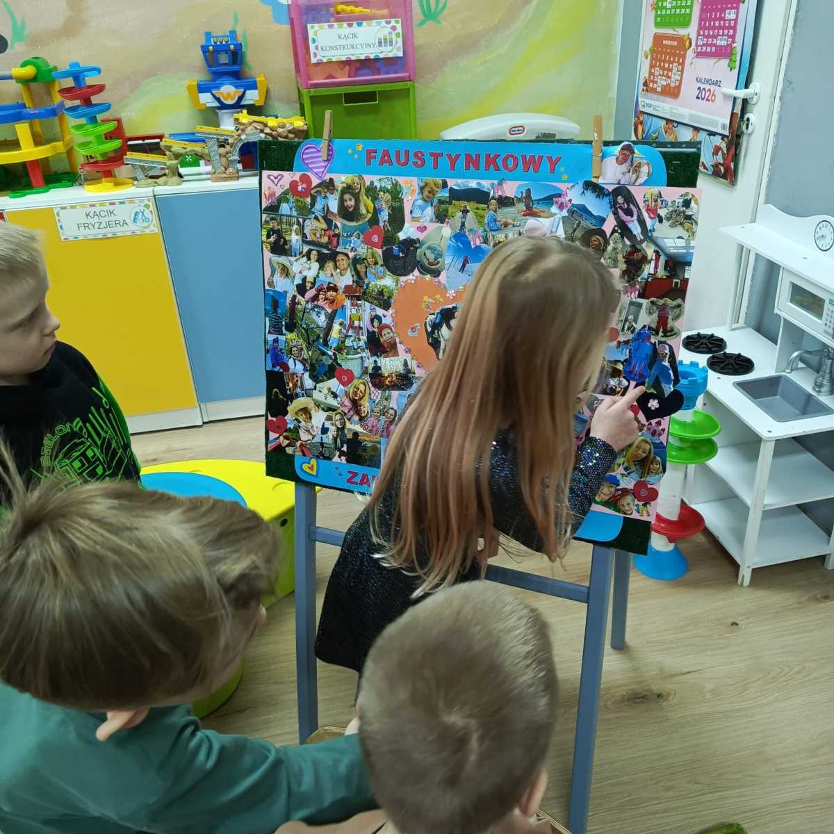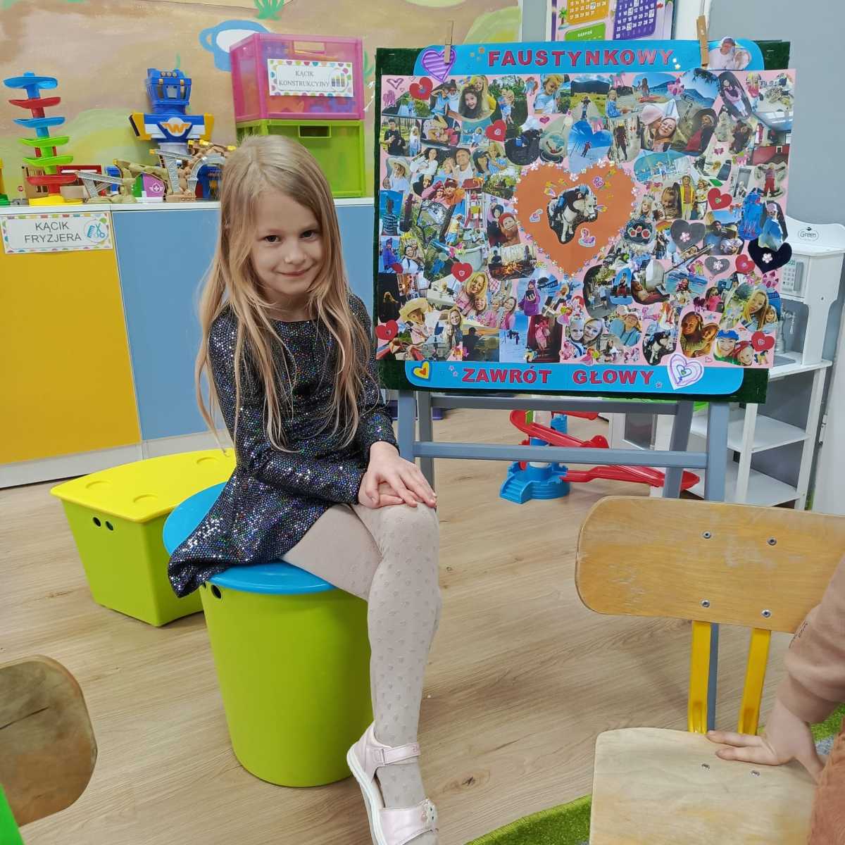 Od 16.02 do 20.02.2026 Faustyna była Bohaterką Tygodnia. Dziewczynka przyniosła plakat, który posłużył jej, aby opowiedzieć dzieciom o swojej rodzinie oraz o tym, co lubi robić w wolnym czasie.