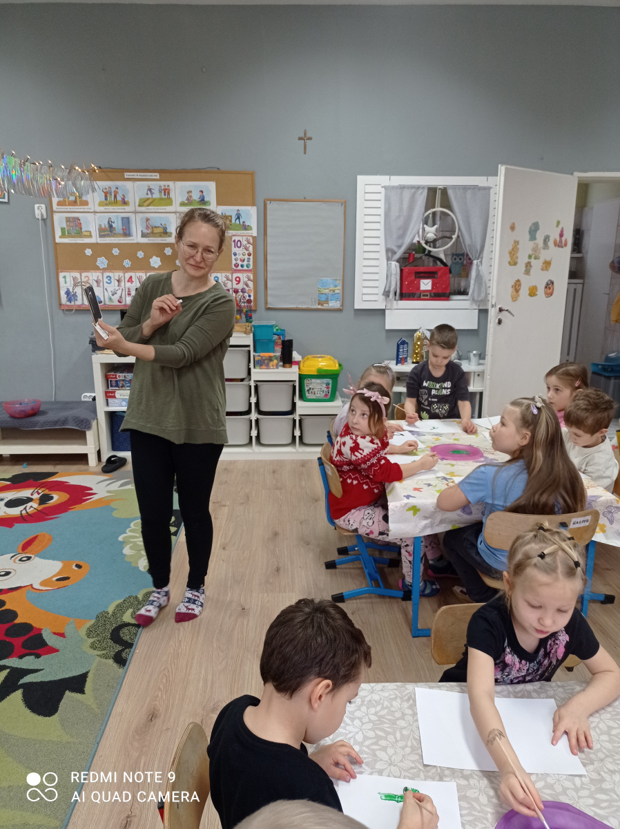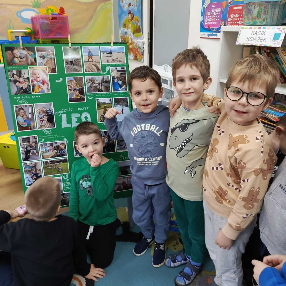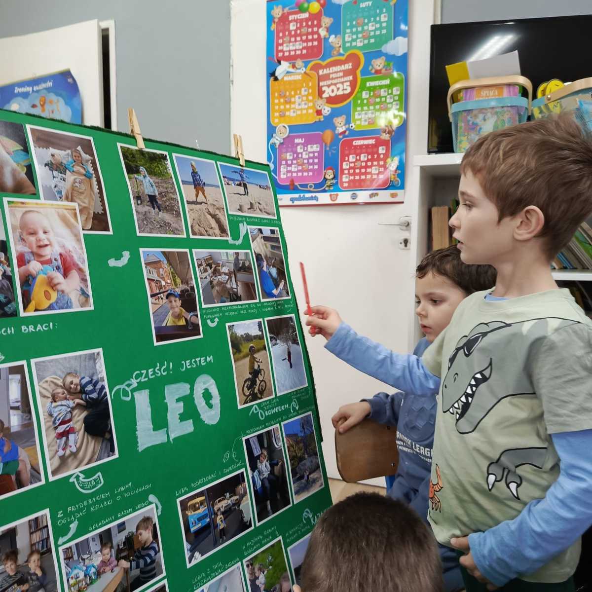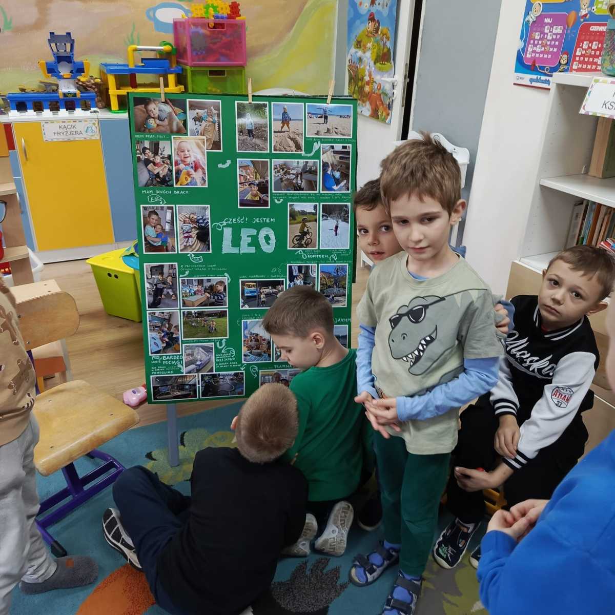 Od 02.12 do 05.12.2025 Leo był Bohaterem Tygodnia. Chłopiec przyniósł plakat, który posłużył mu, aby opowiedzieć dzieciom o swojej rodzinie oraz o tym, co lubi robić w wolnym czasie. W czasie swojego tygodnia, Leo przyniósł ciekawe bajki, z którymi mogła zapoznać się cała grupa. Pani Marta (Mama Leosia) odwiedziła nas z ciekawymi zajęcia o Chinach. Dzieci oglądały zdjęcia, słuchały ciekawostek, uczyły się posługiwać pałeczkami oraz próbowały napisać „dzień dobry” (powitanie) w języku chińskim.