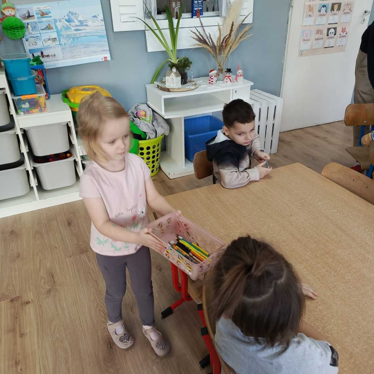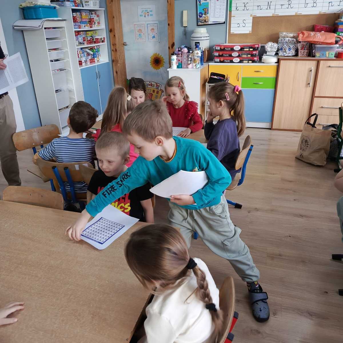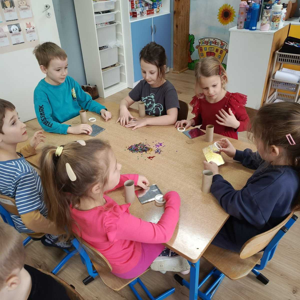 Od 09.02 do 13.02.2026 Olek był Bohaterem Tygodnia. Chłopiec przyniósł plakat, który posłużył mu, aby opowiedzieć dzieciom o swojej rodzinie oraz o tym, co lubi robić w wolnym czasie. W czasie swojego tygodnia, Olek przynosił zabawki, którymi dzielił się z innymi dziećmi. Olek zaprosił do naszej grupy swojego Tatę (p.Mateusz), który przygotował dla dzieci zajęcia oraz opowiedział o swojej pracy. Dzieci wykonały również kalejdoskopy. Na koniec zajęć Olek poczęstował dzieci domowym wypiekiem – babeczkami.