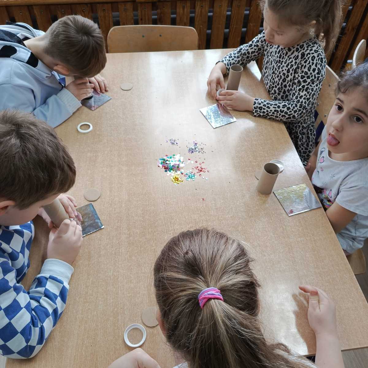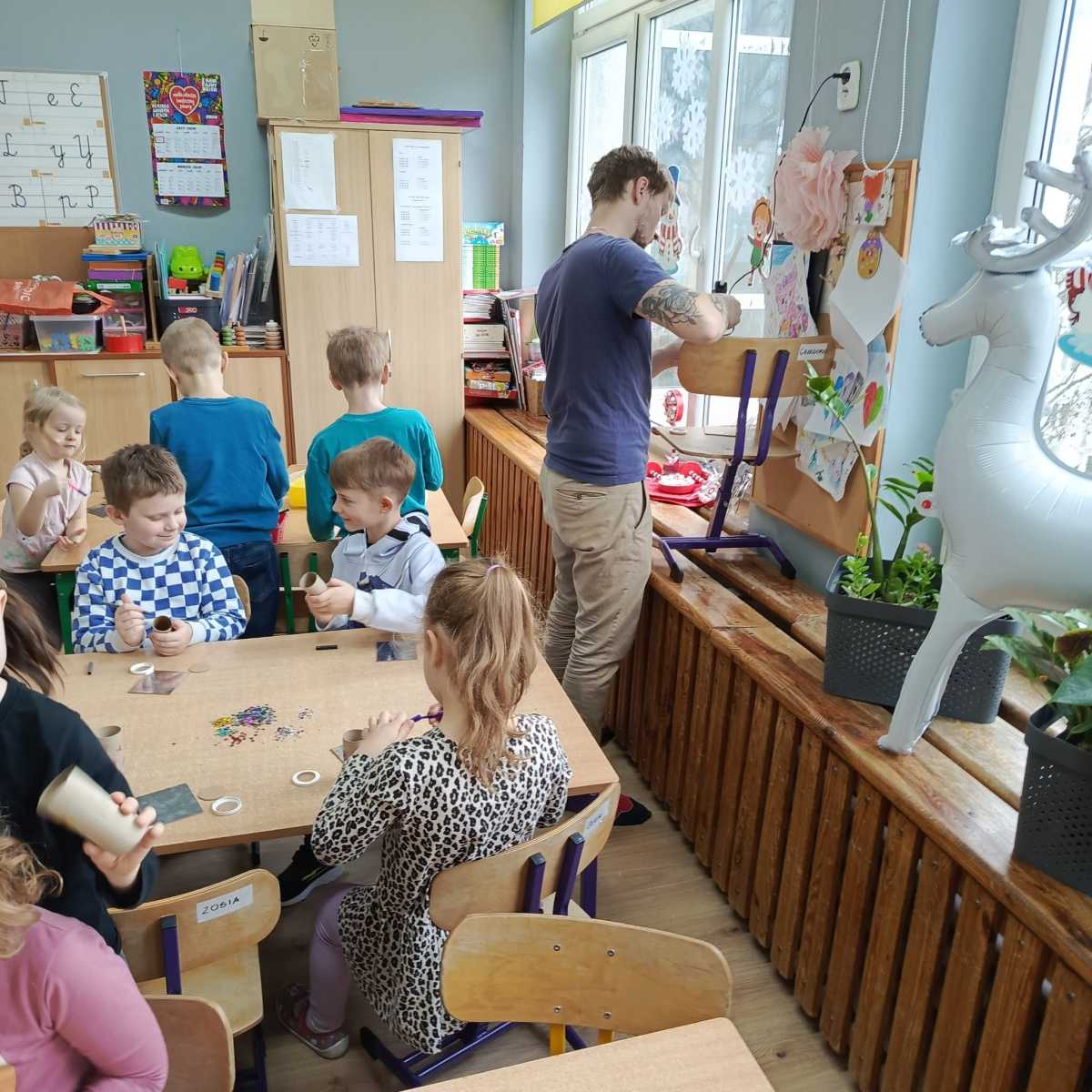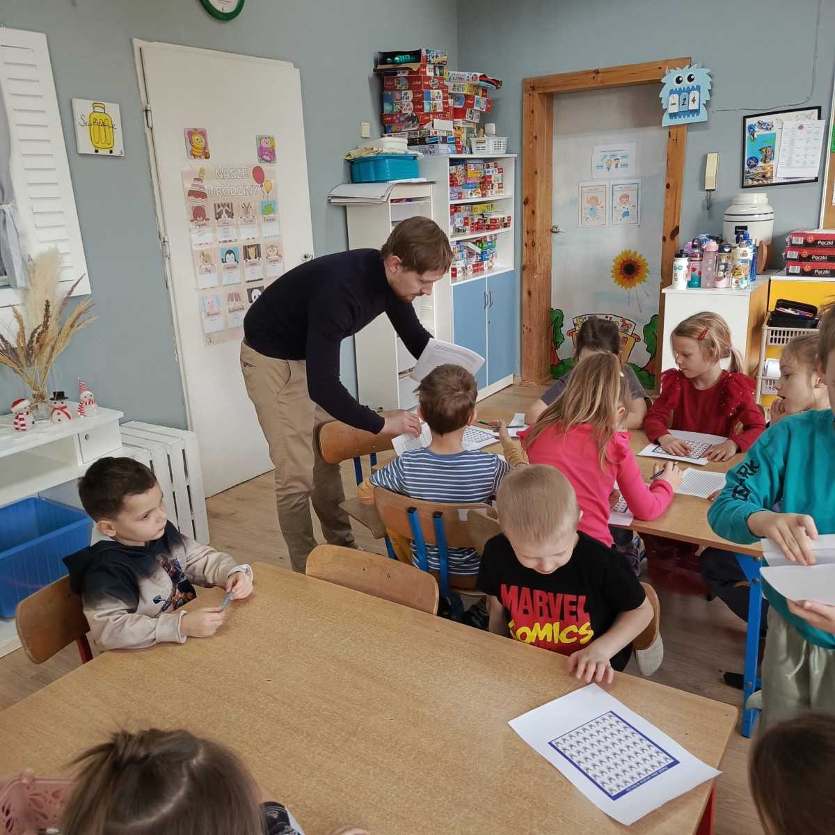 Od 09.02 do 13.02.2026 Olek był Bohaterem Tygodnia. Chłopiec przyniósł plakat, który posłużył mu, aby opowiedzieć dzieciom o swojej rodzinie oraz o tym, co lubi robić w wolnym czasie. W czasie swojego tygodnia, Olek przynosił zabawki, którymi dzielił się z innymi dziećmi. Olek zaprosił do naszej grupy swojego Tatę (p.Mateusz), który przygotował dla dzieci zajęcia oraz opowiedział o swojej pracy. Dzieci wykonały również kalejdoskopy. Na koniec zajęć Olek poczęstował dzieci domowym wypiekiem – babeczkami.