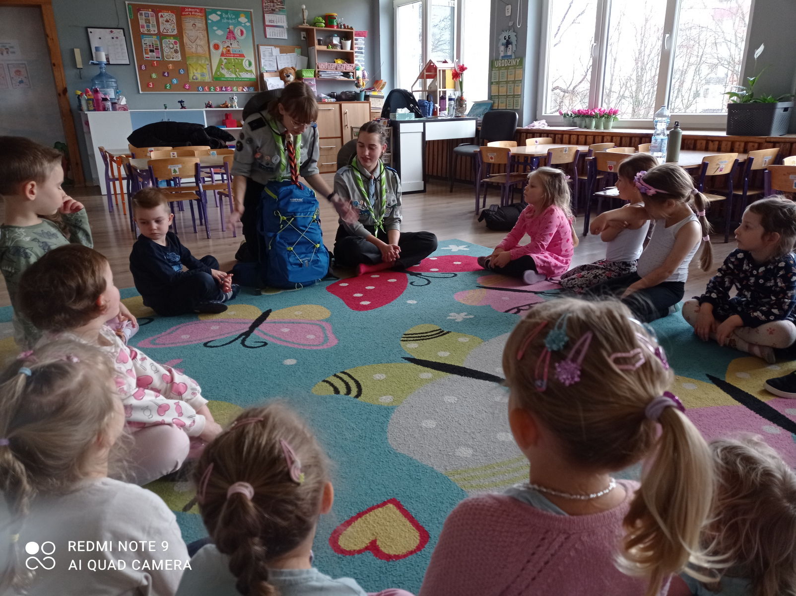 Pani Hania i Pani Agatka to dwie Drużynowe z ZHP, które odwiedziły naszych Przedszkolaków, aby opowiedzieć im co to jest Harcerstwo oraz kto i kiedy może do niego przystąpić. Panie pokazały dzieciom różne gadżety oraz bawiły się z Przedszkolakami w zabawę muzyczno – ruchową „Osioł”. Dziękujemy za odwiedziny i poświęcony czas 🙂