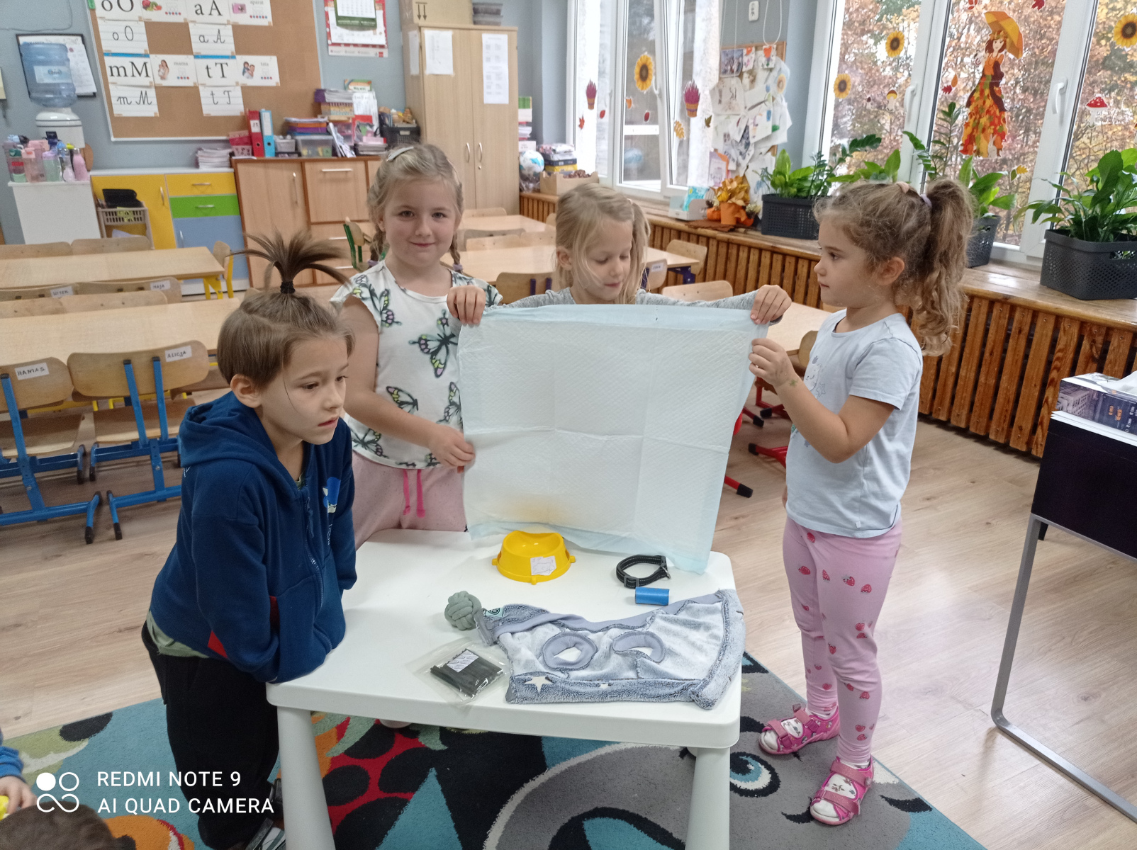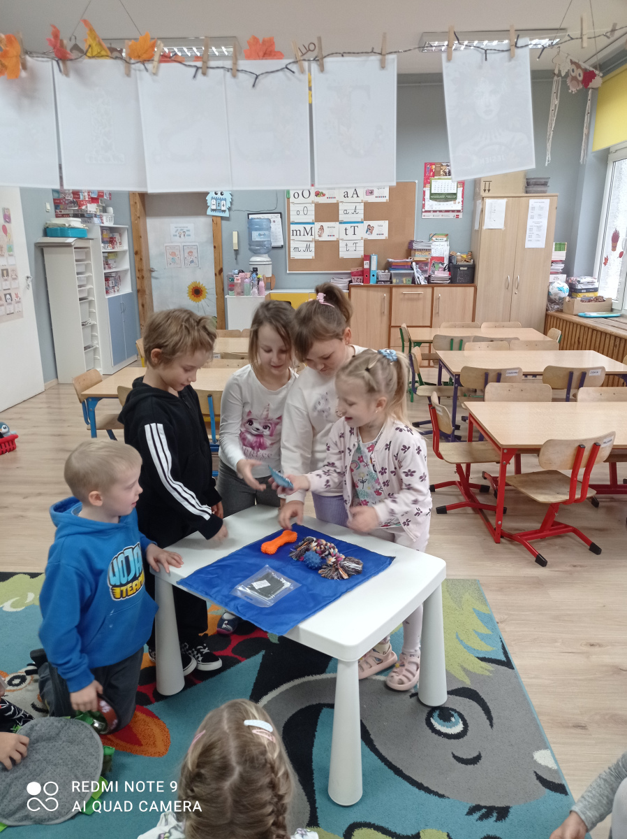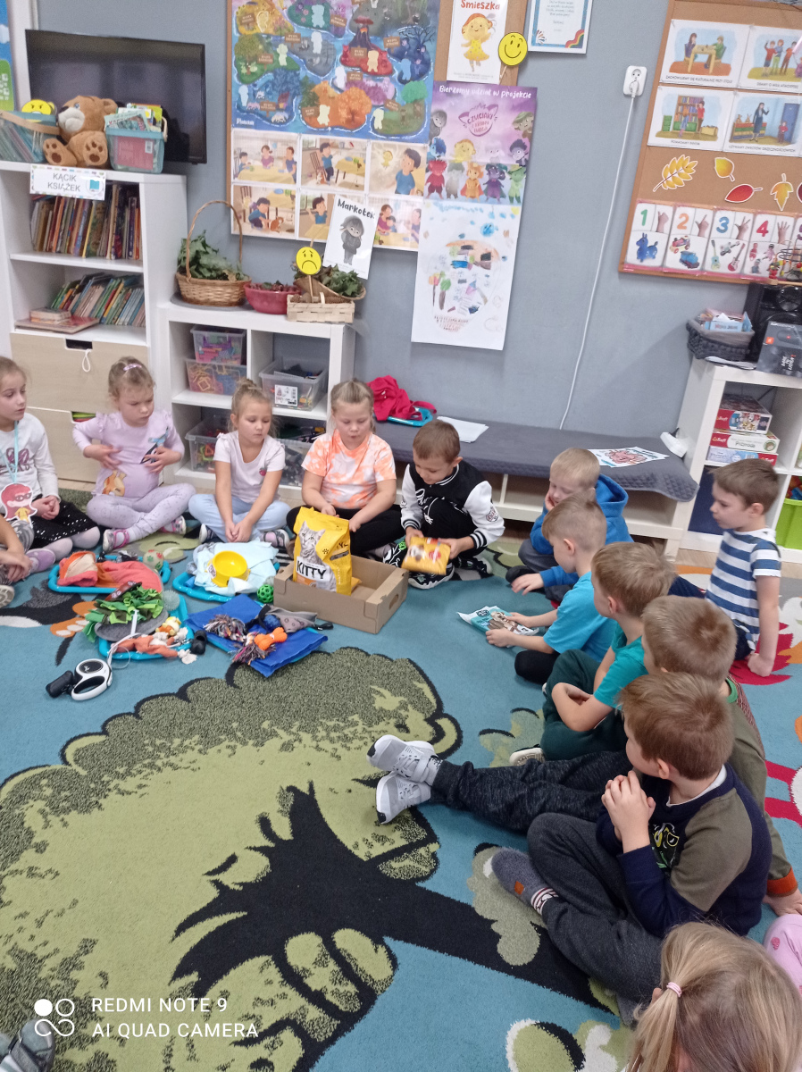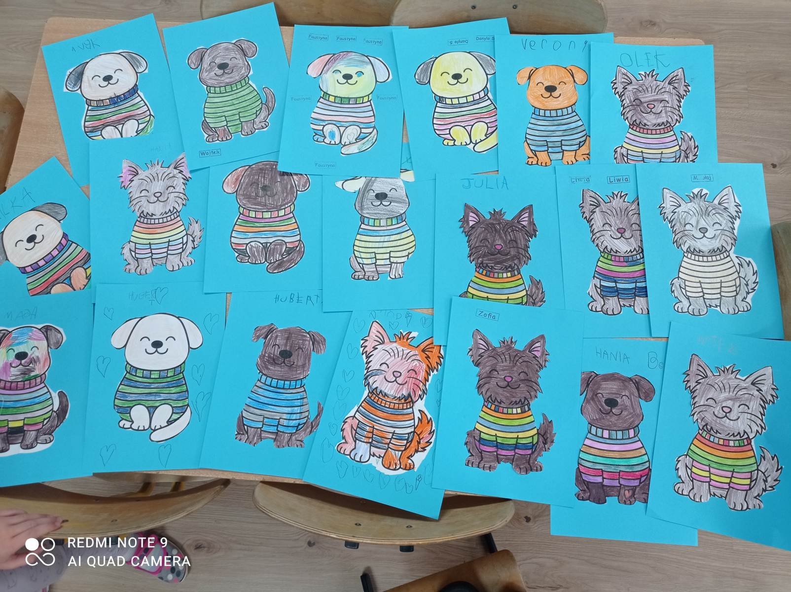 Dzień Kundelka w przedszkolu to okazja do edukacji na temat opieki nad zwierzętami, rozwoju empatii i odpowiedzialności. Dzieci uczą się szacunku do zwierząt poprzez zabawy tematyczne, prace plastyczne oraz rozmowy. W tym dniu, nasi Zdobywcy pracowali w małych zespołach kilkuosobowych, prezentując przed całą grupą akcesoria dla piesków. Dzieci wykonały również prace plastyczną, którą można było zobaczyć przed salą.