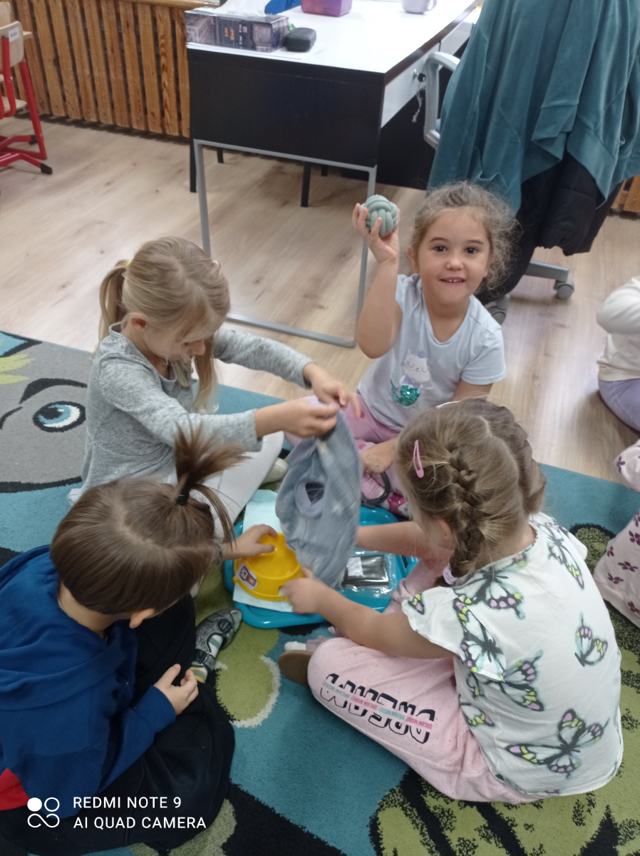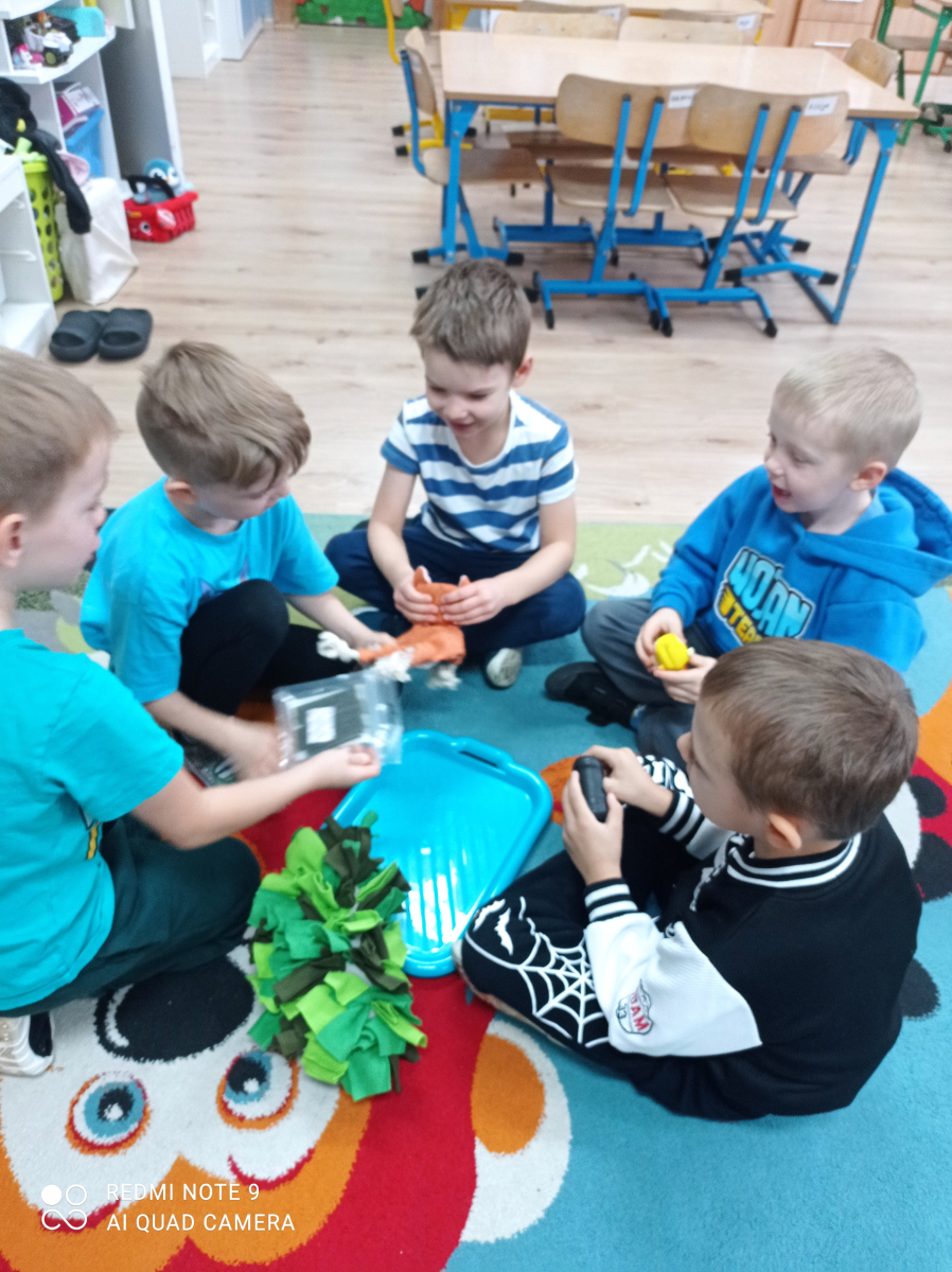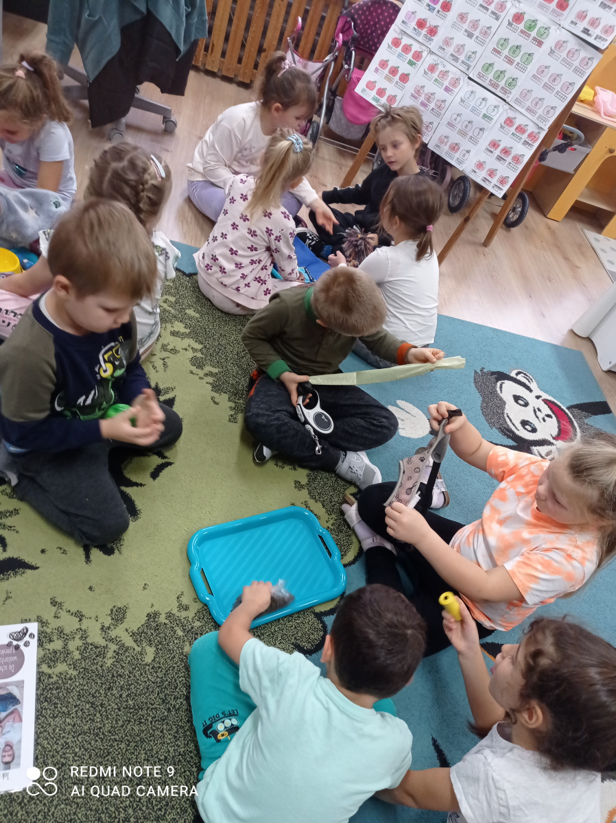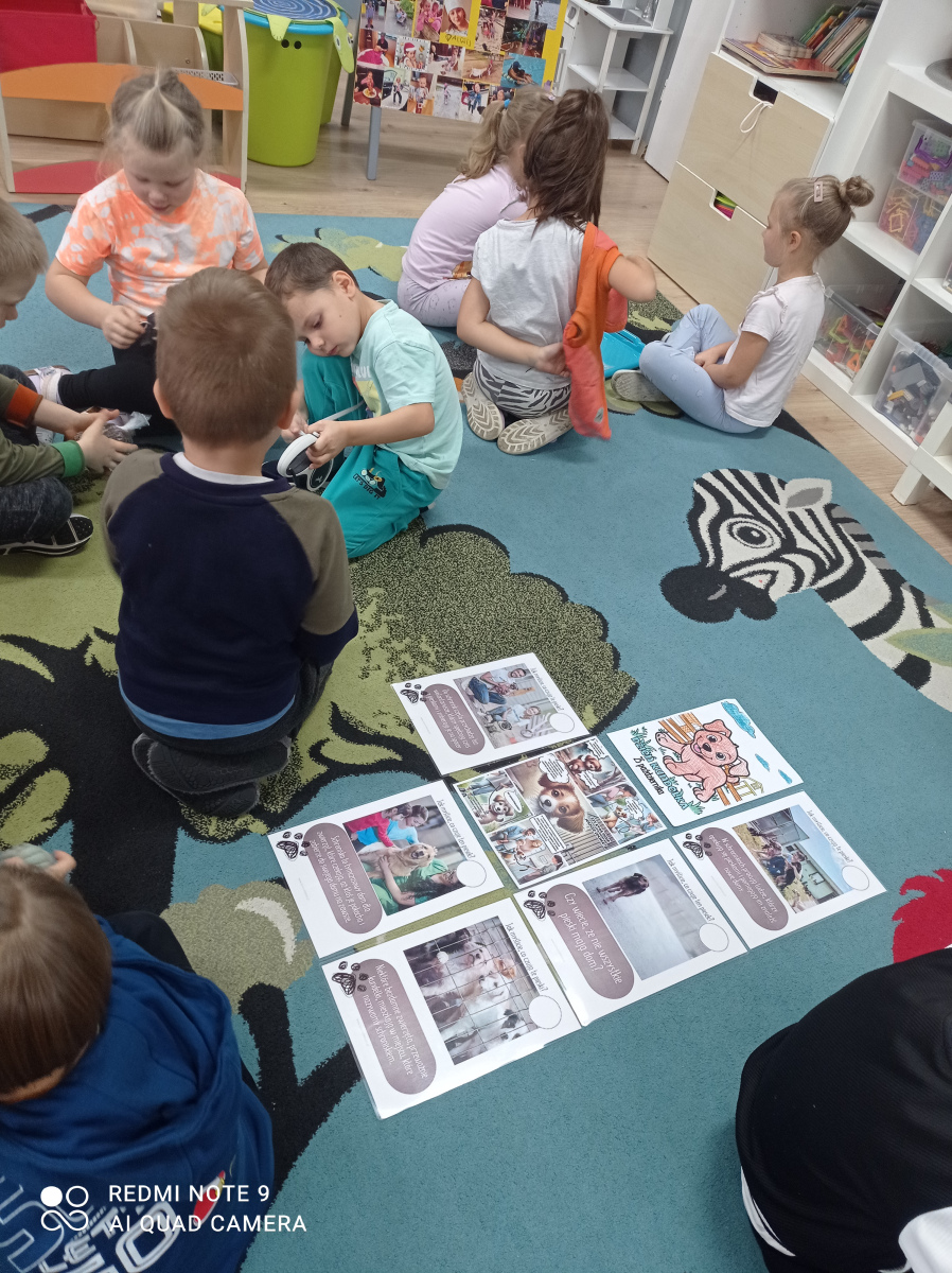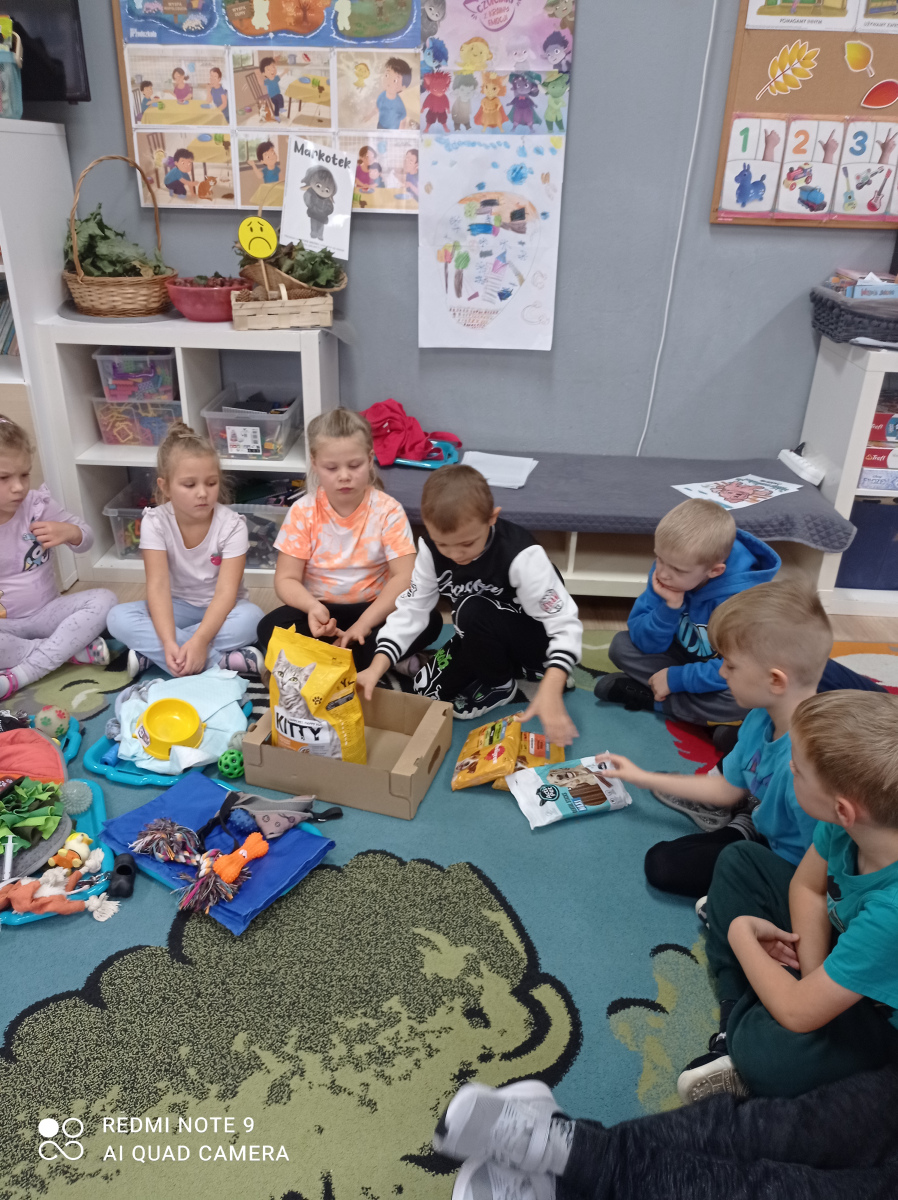 Dzień Kundelka w przedszkolu to okazja do edukacji na temat opieki nad zwierzętami, rozwoju empatii i odpowiedzialności. Dzieci uczą się szacunku do zwierząt poprzez zabawy tematyczne, prace plastyczne oraz rozmowy. W tym dniu, nasi Zdobywcy pracowali w małych zespołach kilkuosobowych, prezentując przed całą grupą akcesoria dla piesków. Dzieci wykonały również prace plastyczną, którą można było zobaczyć przed salą.