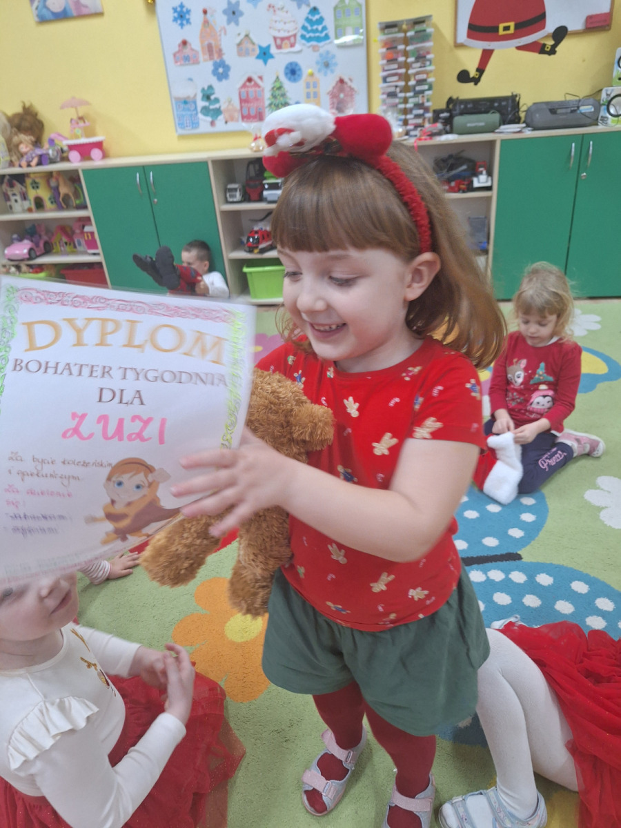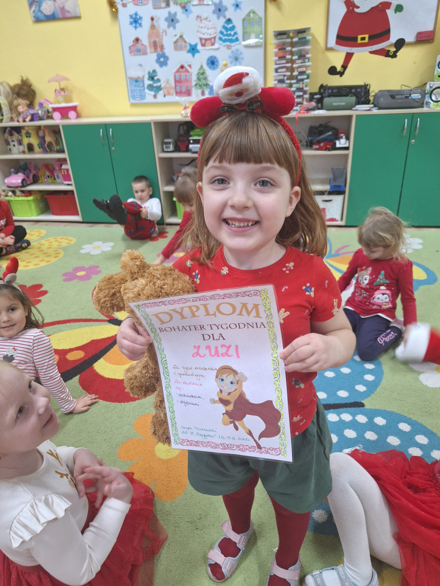 Kolejną Bohaterką Tygodnia w grupie Talenciaków była Zuzia. Zuzia wspaniale wywiązywała się z obowiązków Bohaterki i z radością korzystała ze swoich przywilejów. W przedszkolu odwiedził nas również tata naszej Bohaterki, który przeprowadził z Talenciakami bardzo ciekawą lekcję historii.